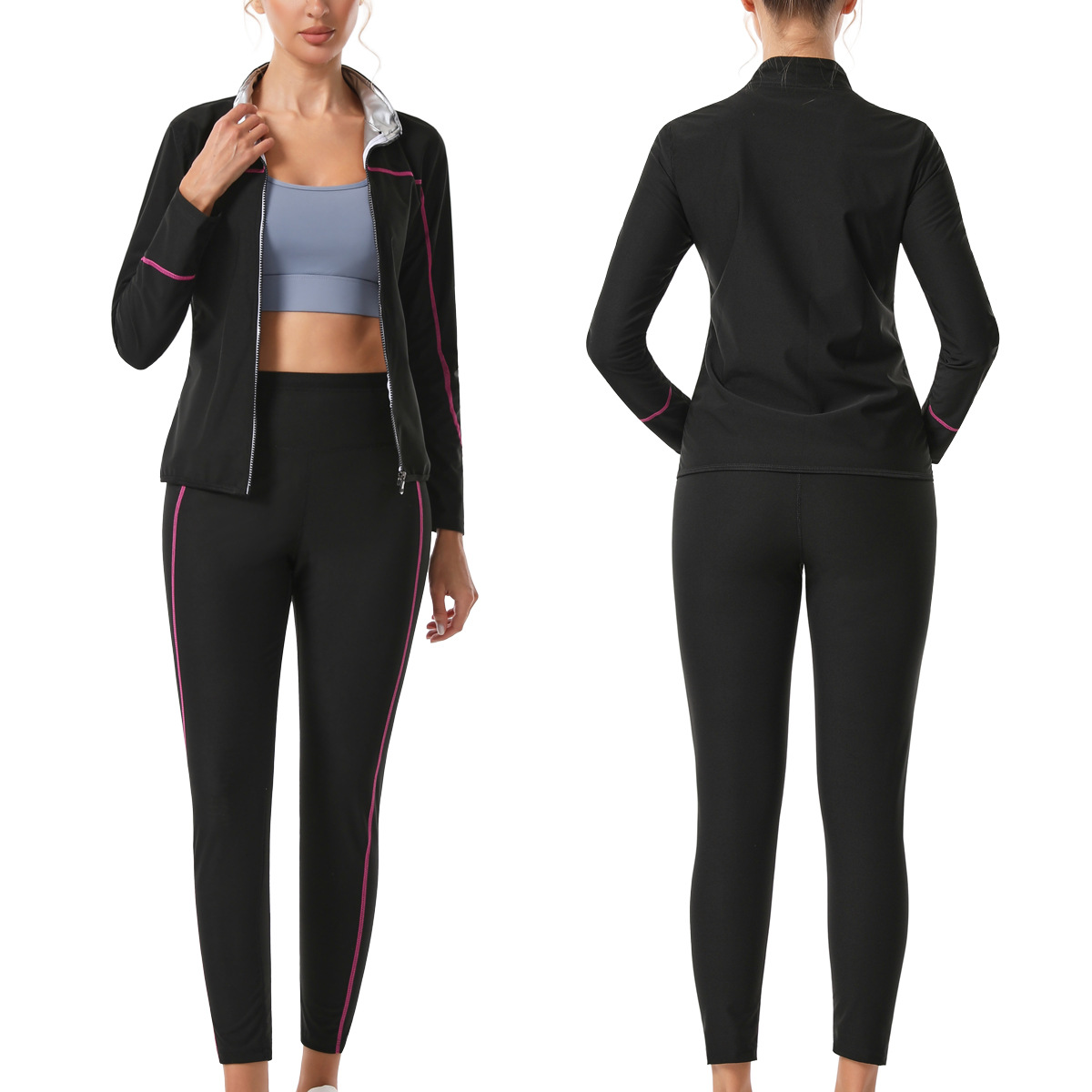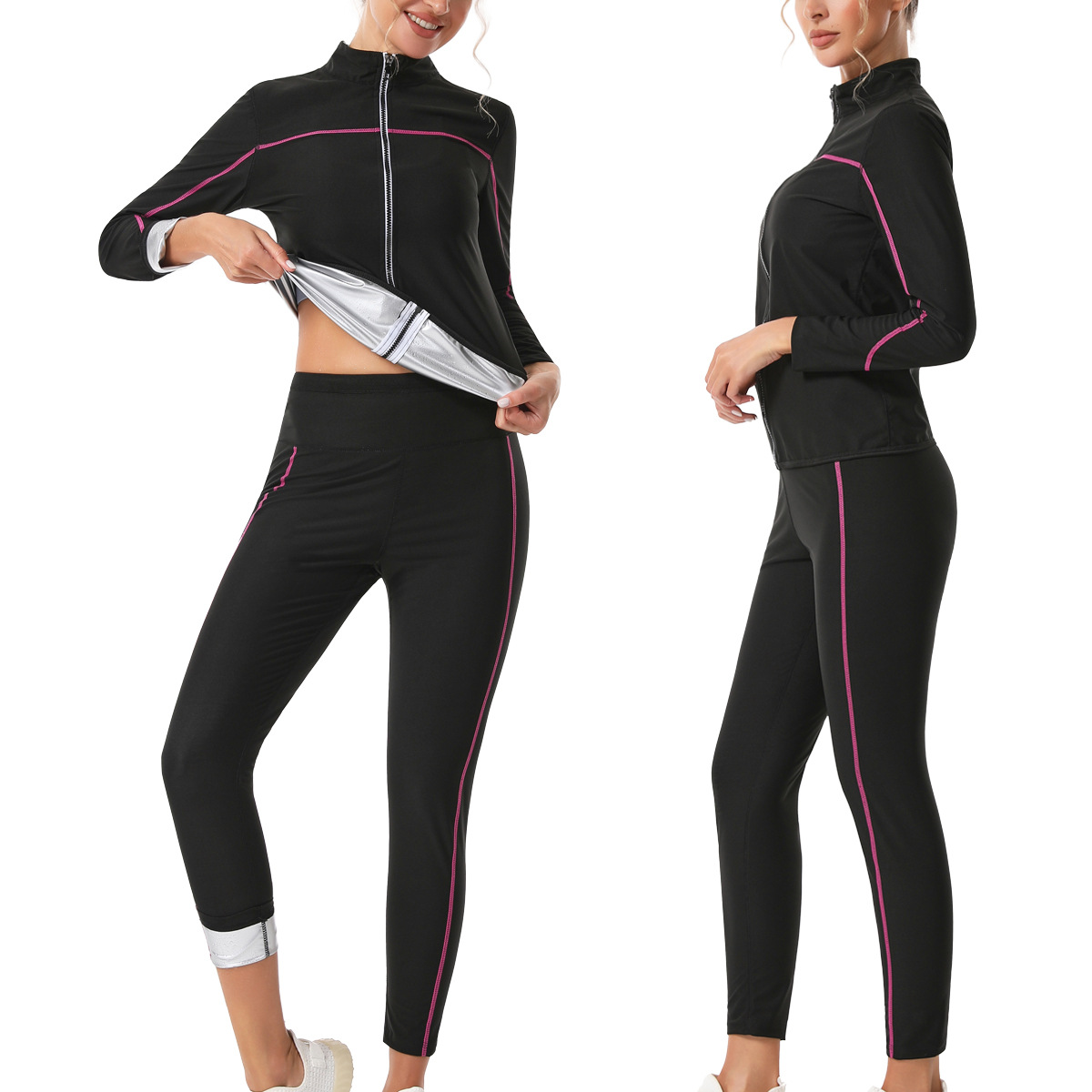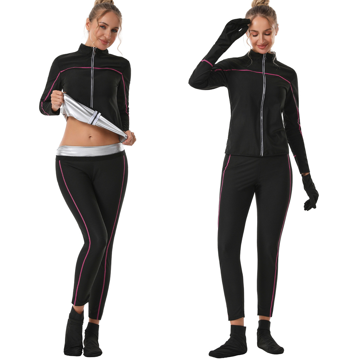 Спортивный костюм с высоким поясом, контроль живота, йога, с замком, длинный воротник