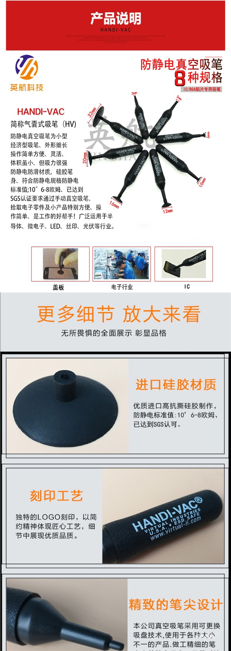 Ручной антистатический вакуумный пинцет British Airways с мощным вакуумным захватом для BGA патчей и чипов Handi-Vac Jinye