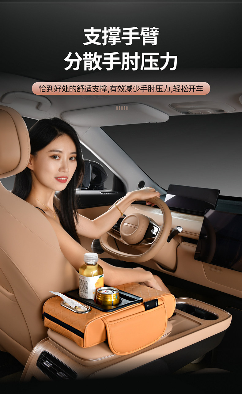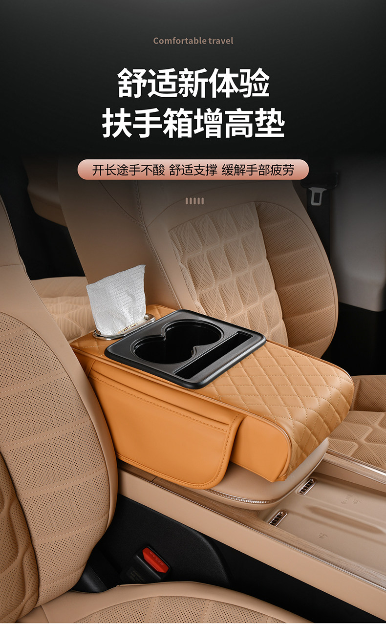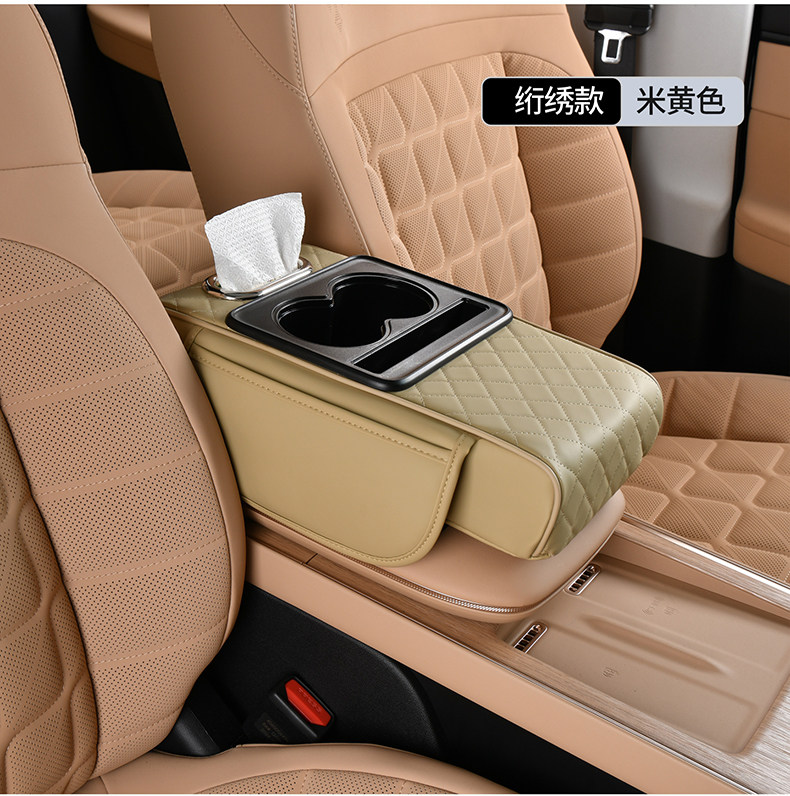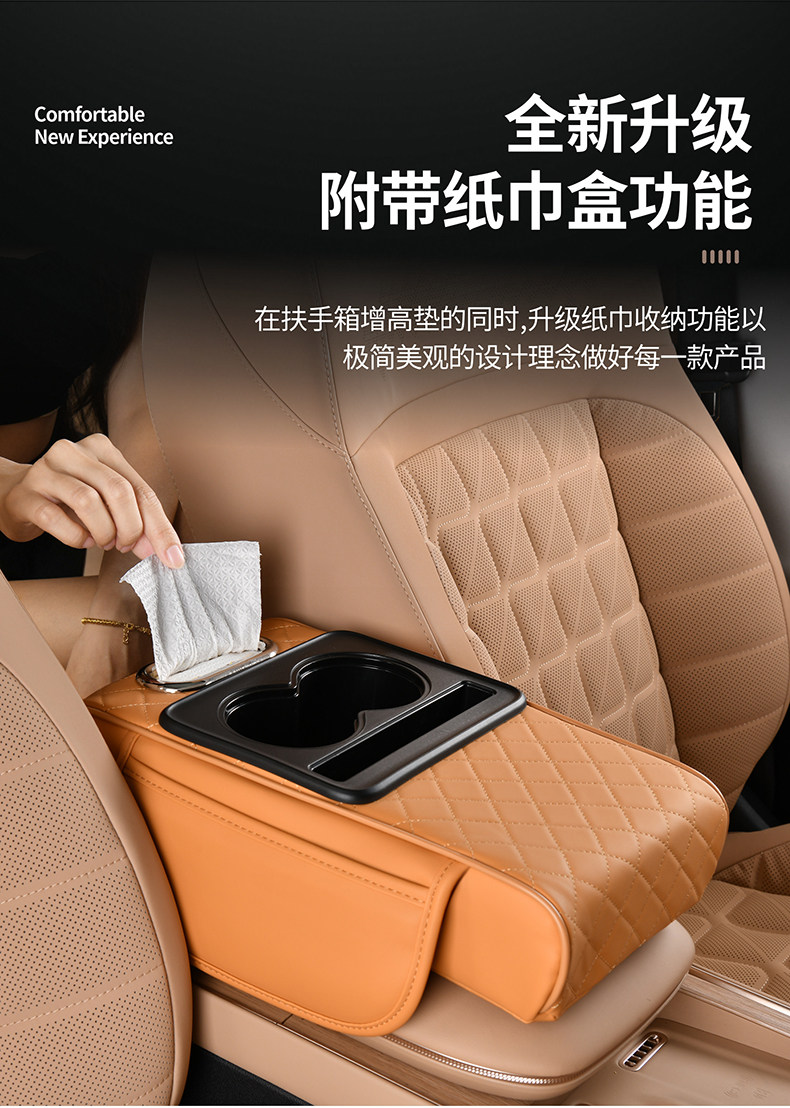 跨境汽车扶手箱增高垫车载中央扶手箱垫纸巾盒收纳袋水杯架四合一
