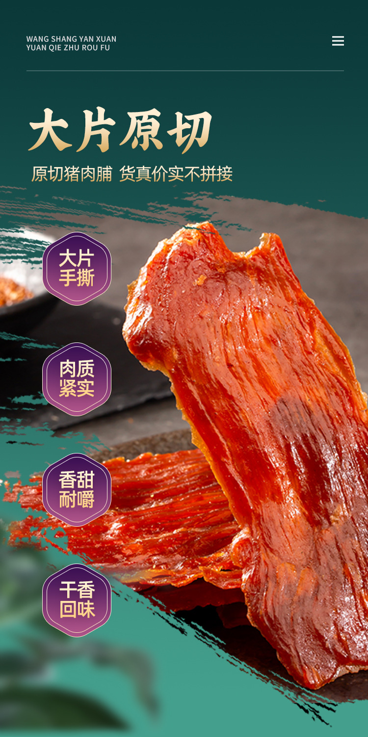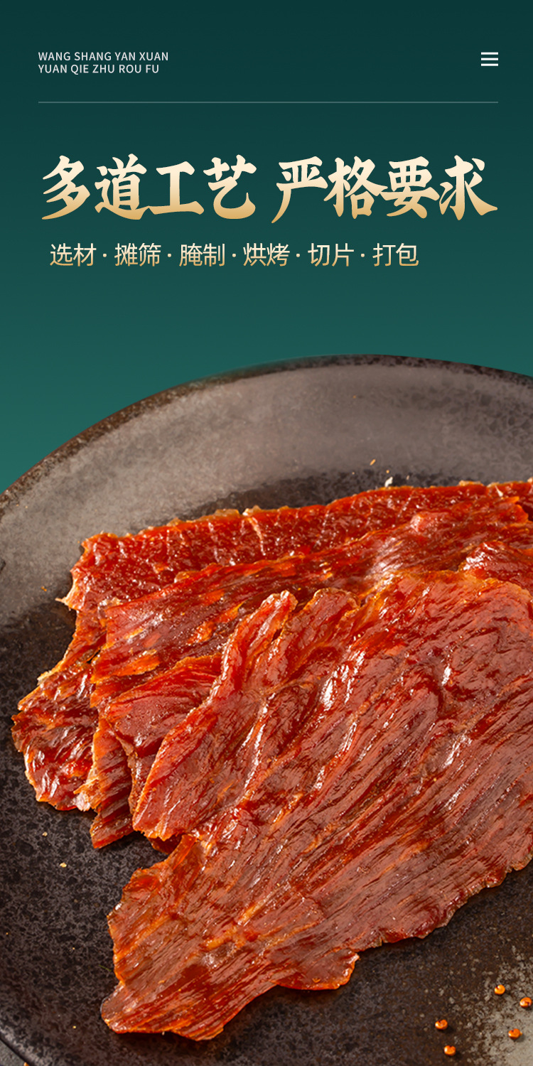 Оригинальная вяленая свинина Wang Shang, тщательно отобранная, специальность Цзинцзян, высокобелковый оригинальный вкус 50г, закуска оптом из свинины