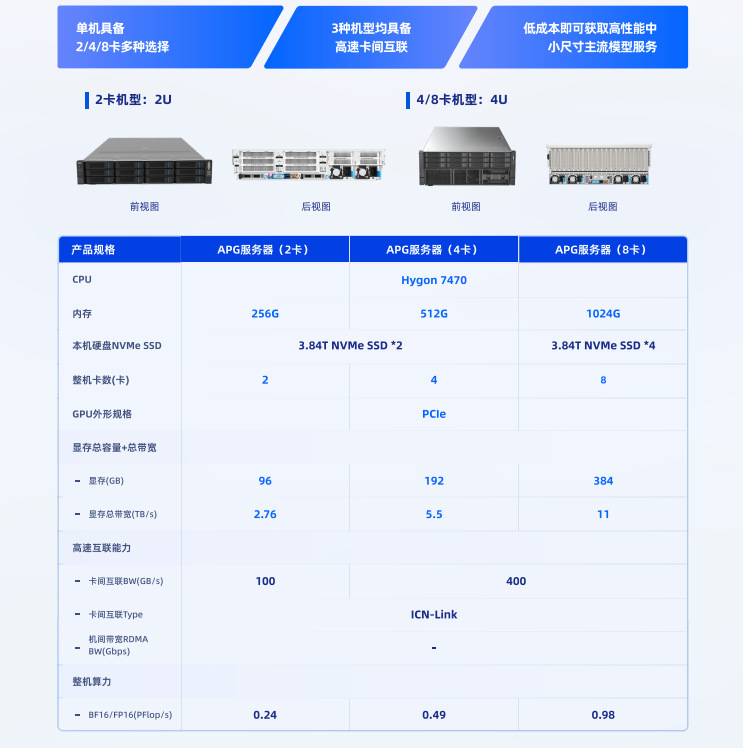 机架式,2路服务器 [hygon7470]*2([48]*2,2.6 GHz) 256G (ECC DDR5 RDIMM 速率 ≥4800MT/s 32G * 8) 480G[480G_sata_ssd]*2 + 3840G[3840G_nvme_ssd]*2 基于LSI3908Raid卡,系统盘做RAID1 双端口25G独立网卡,型号要求:Mellanox ConnectX-6 Lx,并满配兼容多模模块(SFP28) PG3 * 2 220VAC/240HVDC交直流兼容电源,支持电源冗余(机头IEC标准C14,机尾IEC标准C20); 提供基于Web的远程管理控制、配备硬件监控、远程管理功能;