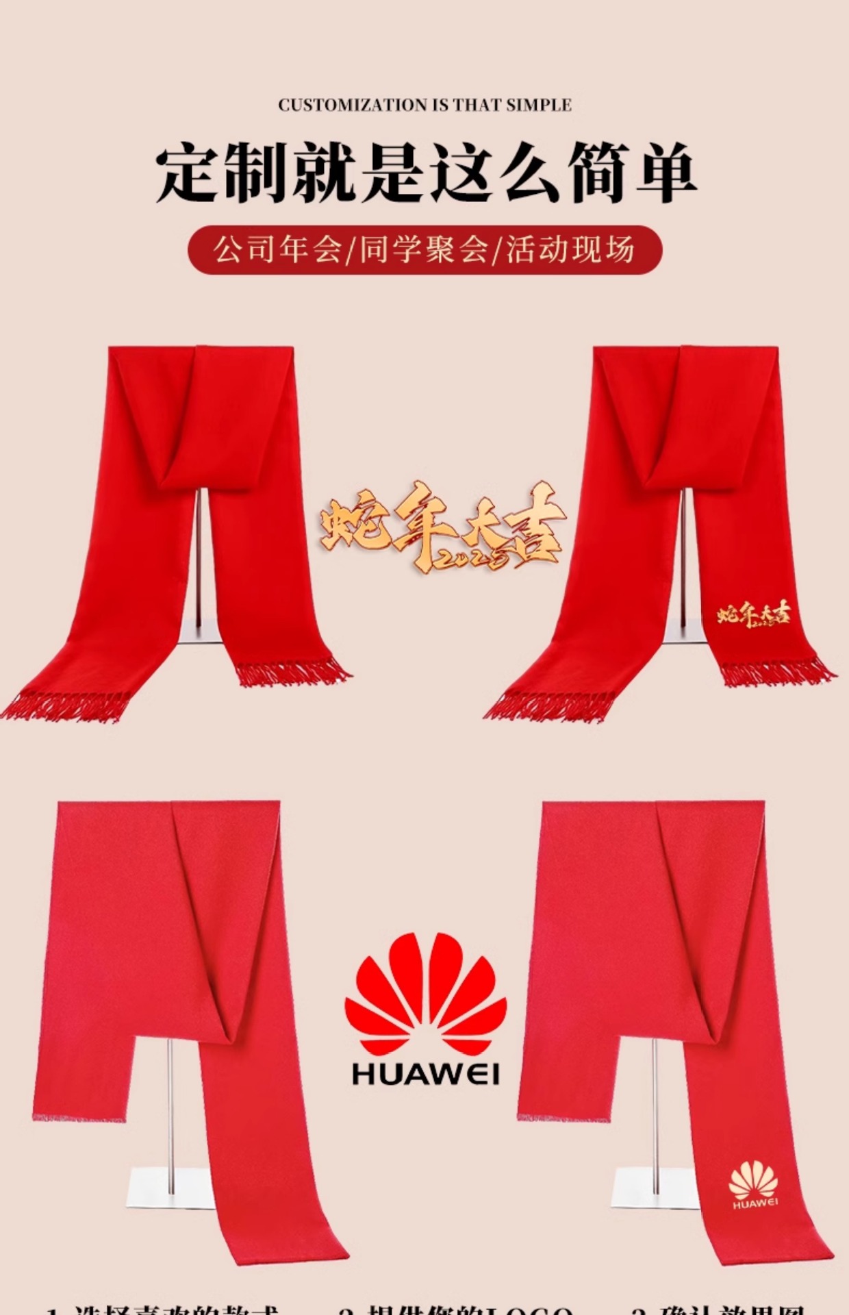 Китайский красный большой шарф с производственным логотипом для ежегодной встречи, оптовая вышивка и печать
