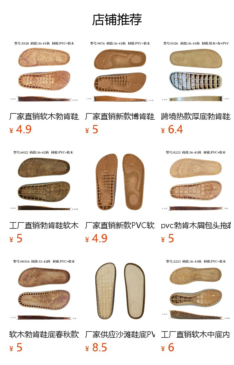 ![]() | 2138 birkenstock midsole [brown] | 41 | 800шт: ¥4.10, 5000шт: ¥4.00, 20000шт: ¥3.80 | 5000 | 5950483689565 |