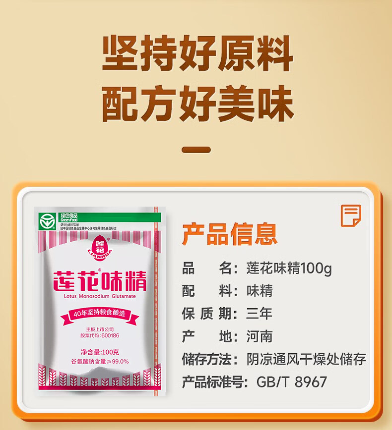 Лотус MSG 100г Приправы для дома Маленькая упаковка Приправа Lianhua Официальный магазин Без куриного экстракта