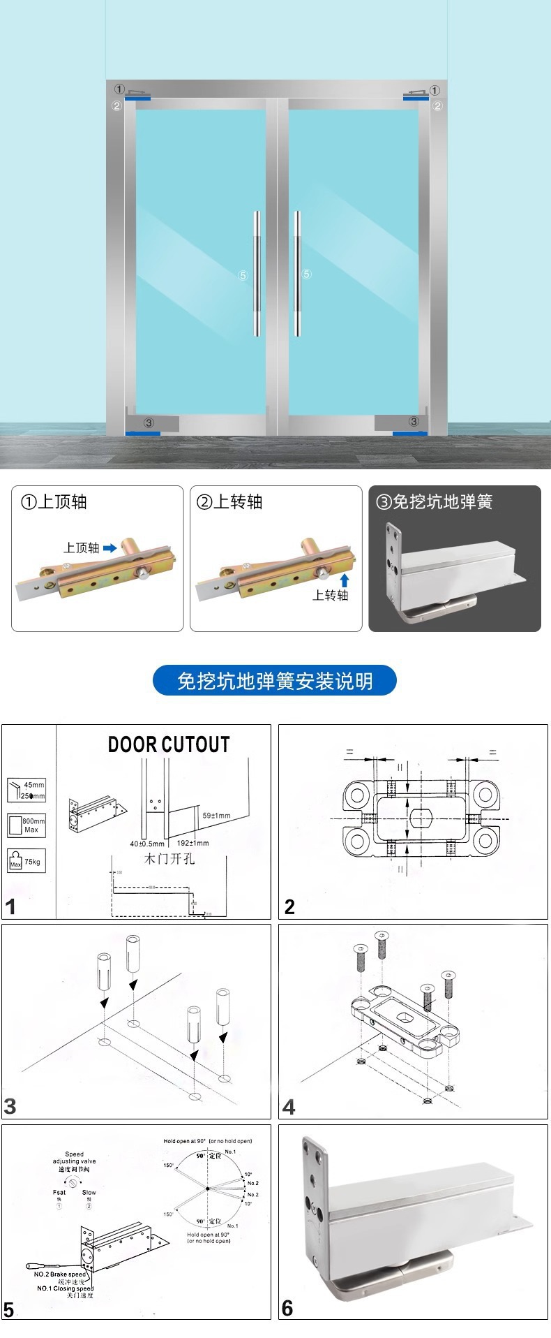 Область применения Framed glass door, no need to dig holes, wooden door floor spring, framed door glass door, hidden buffer silent floor spring accessories
