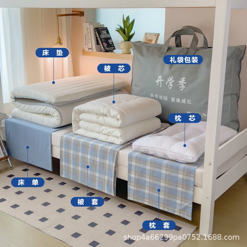Новый комплект постельного белья из чистого хлопка, три предмета, для студенческого общежития, шесть предметов в подарочной упаковке, студенческий сезон