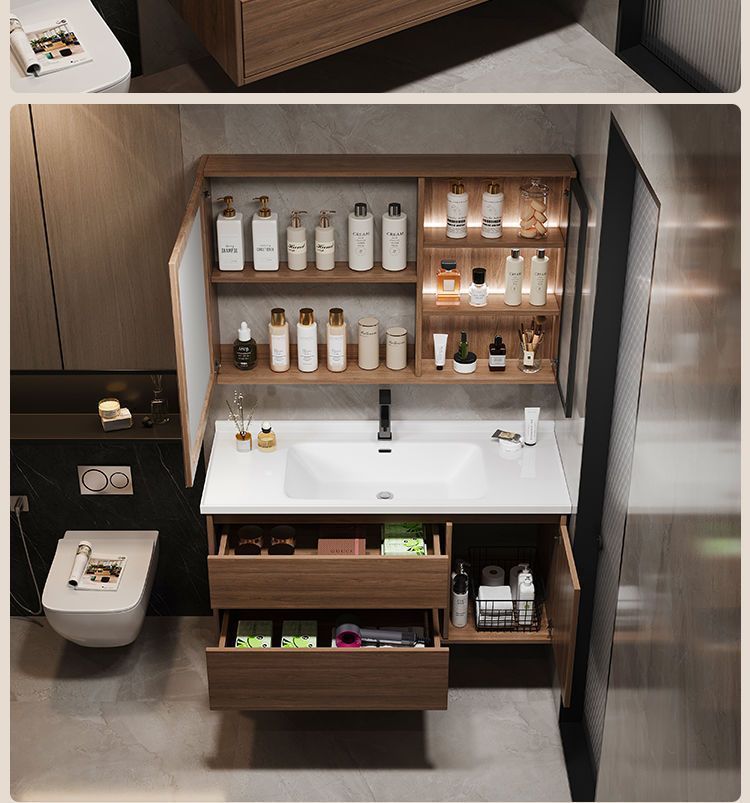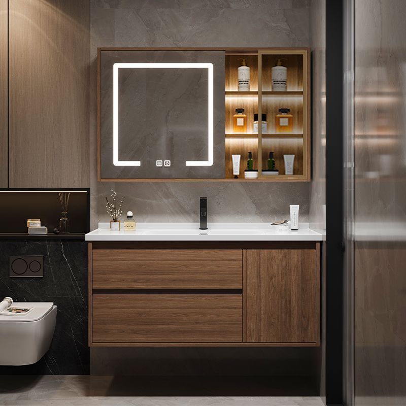 Раковина в китайском стиле, комплект с ореховым шкафом для ванной и интегрированной керамической раковиной