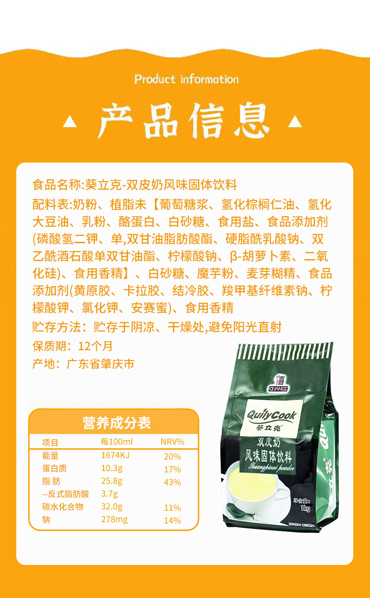 Цяньси Куйкели - двойной молочный порошок, десерт, специальные ингредиенты для чайных магазинов, коммерческое и домашнее использование 1кг