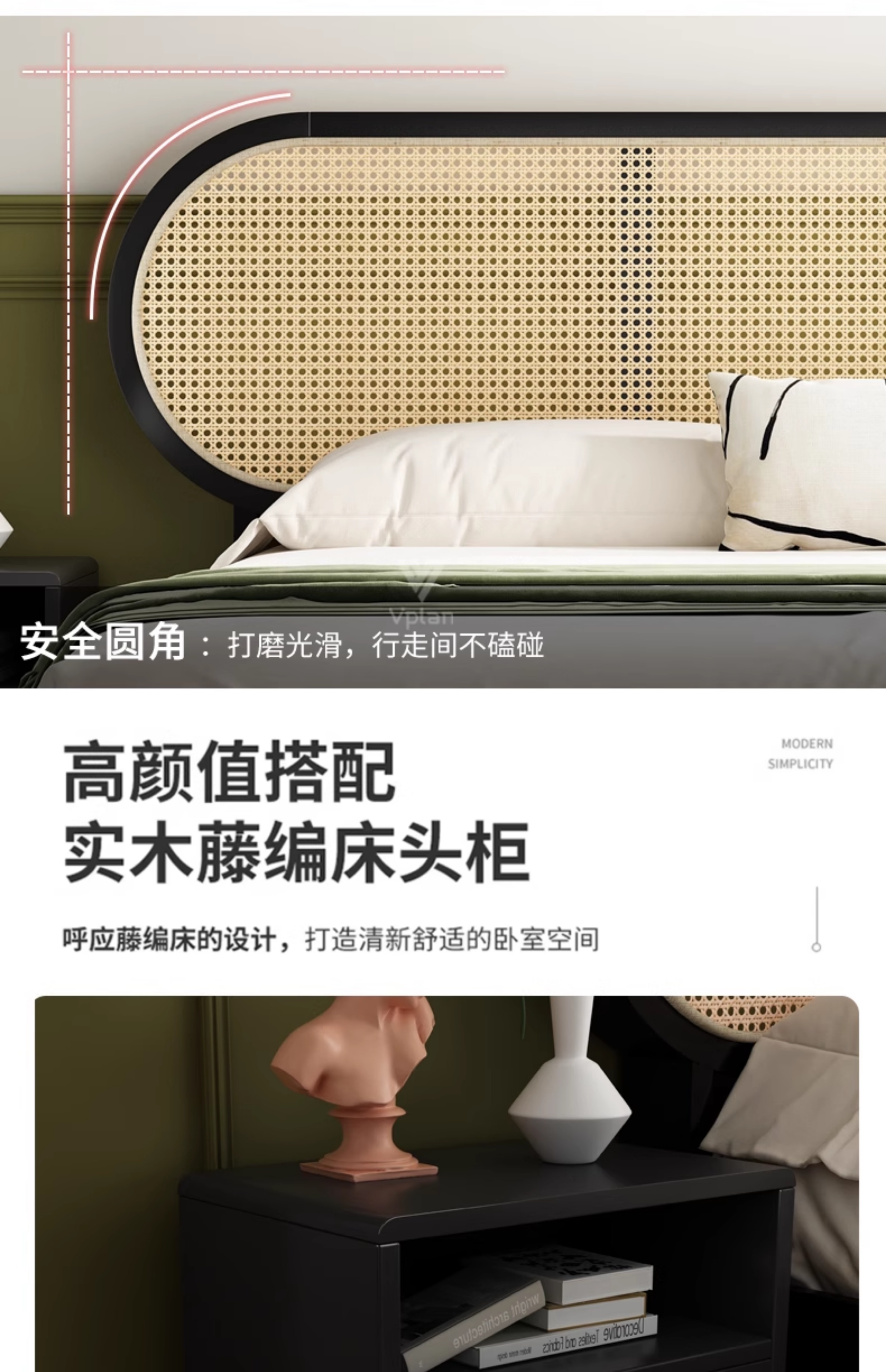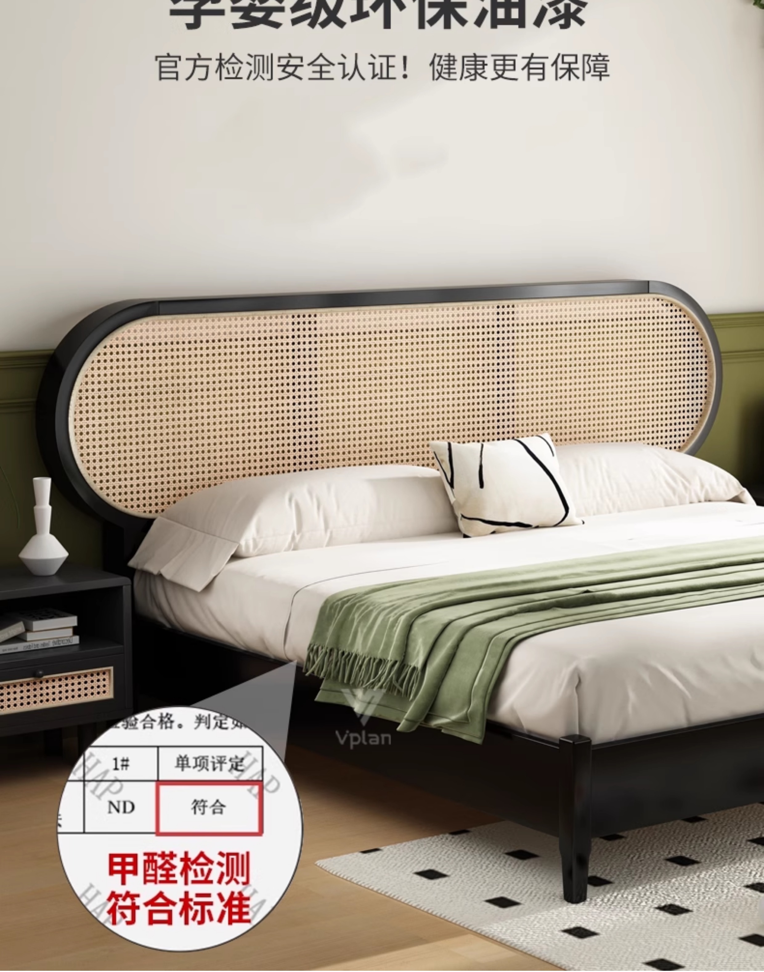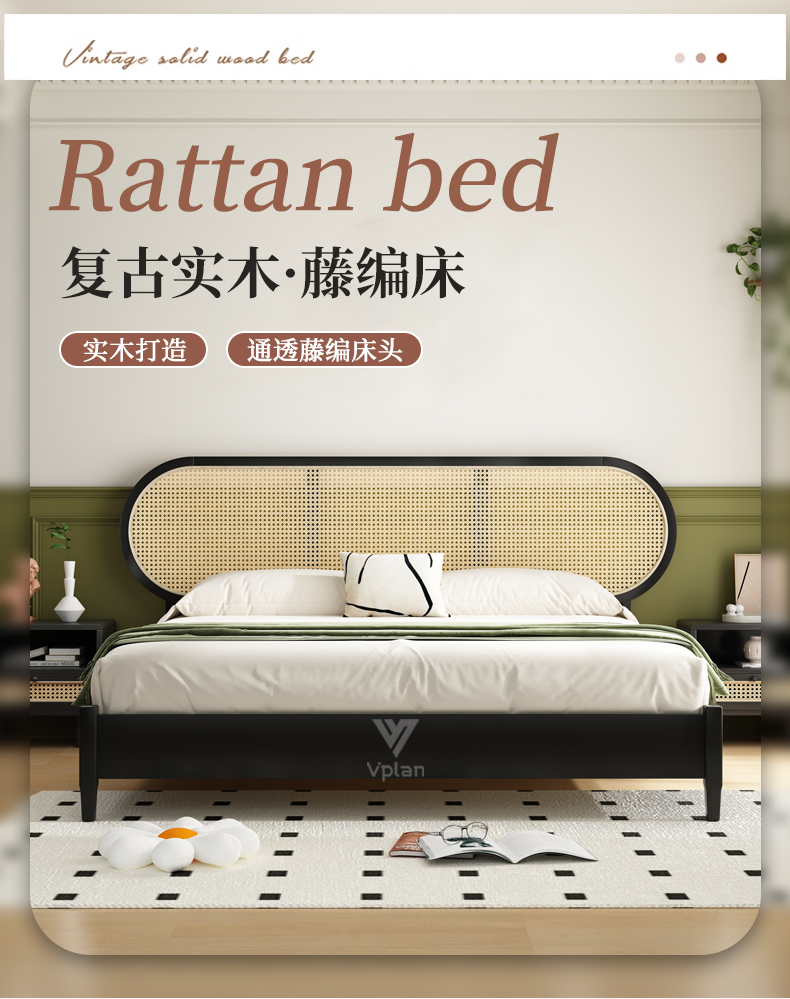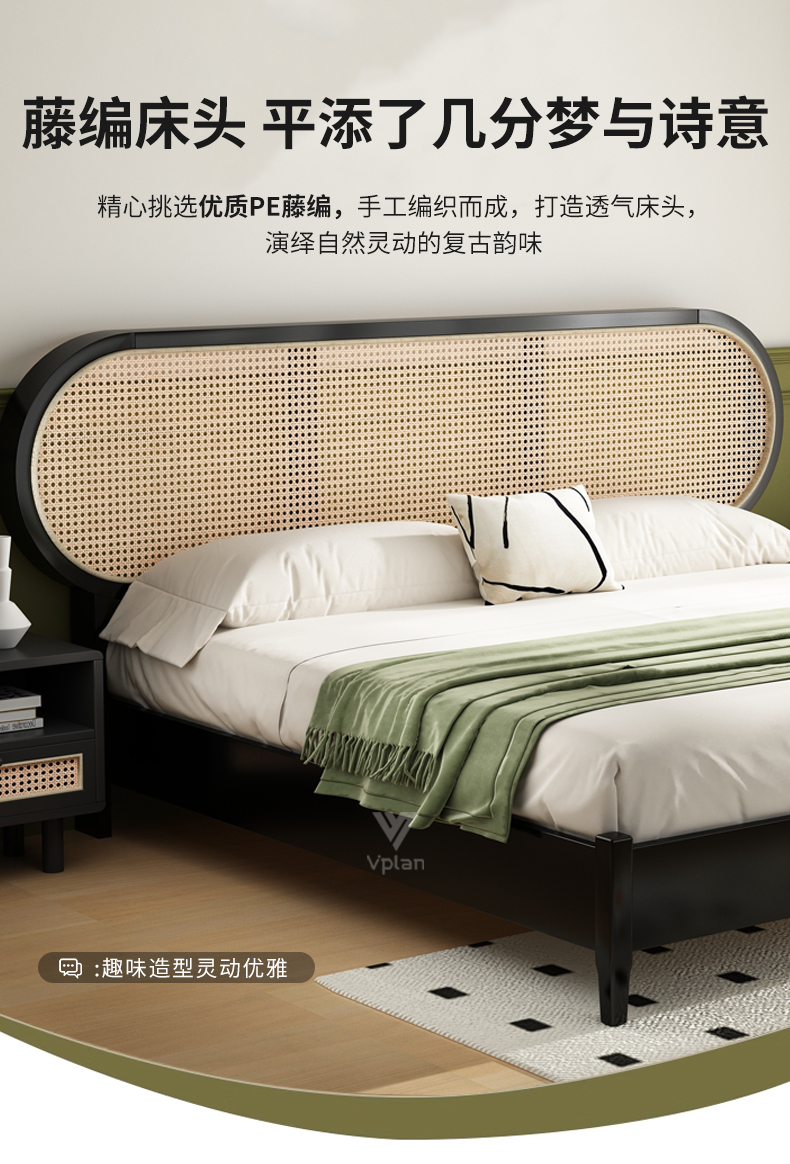 Государственная субсидированная антикварная стильная кровать из массива дерева и ротанга 1.8м двуспальная кровать, ретро ореховая простая мебель для B&B, скандинавская кровать