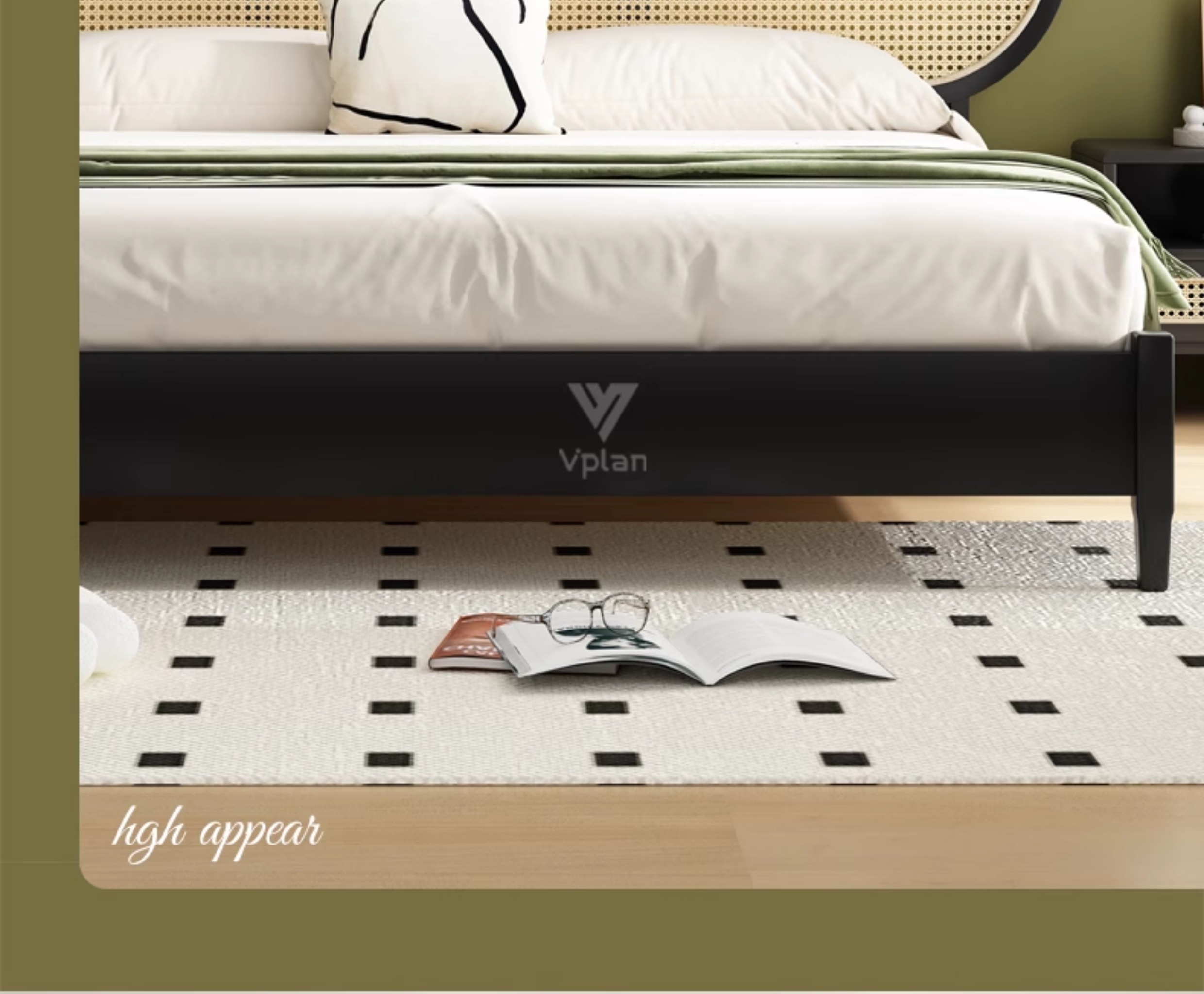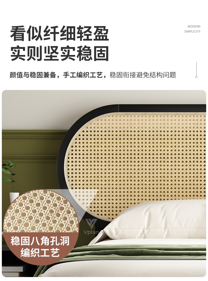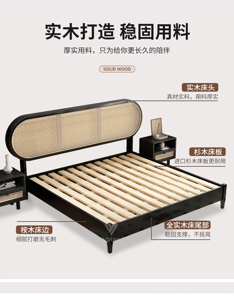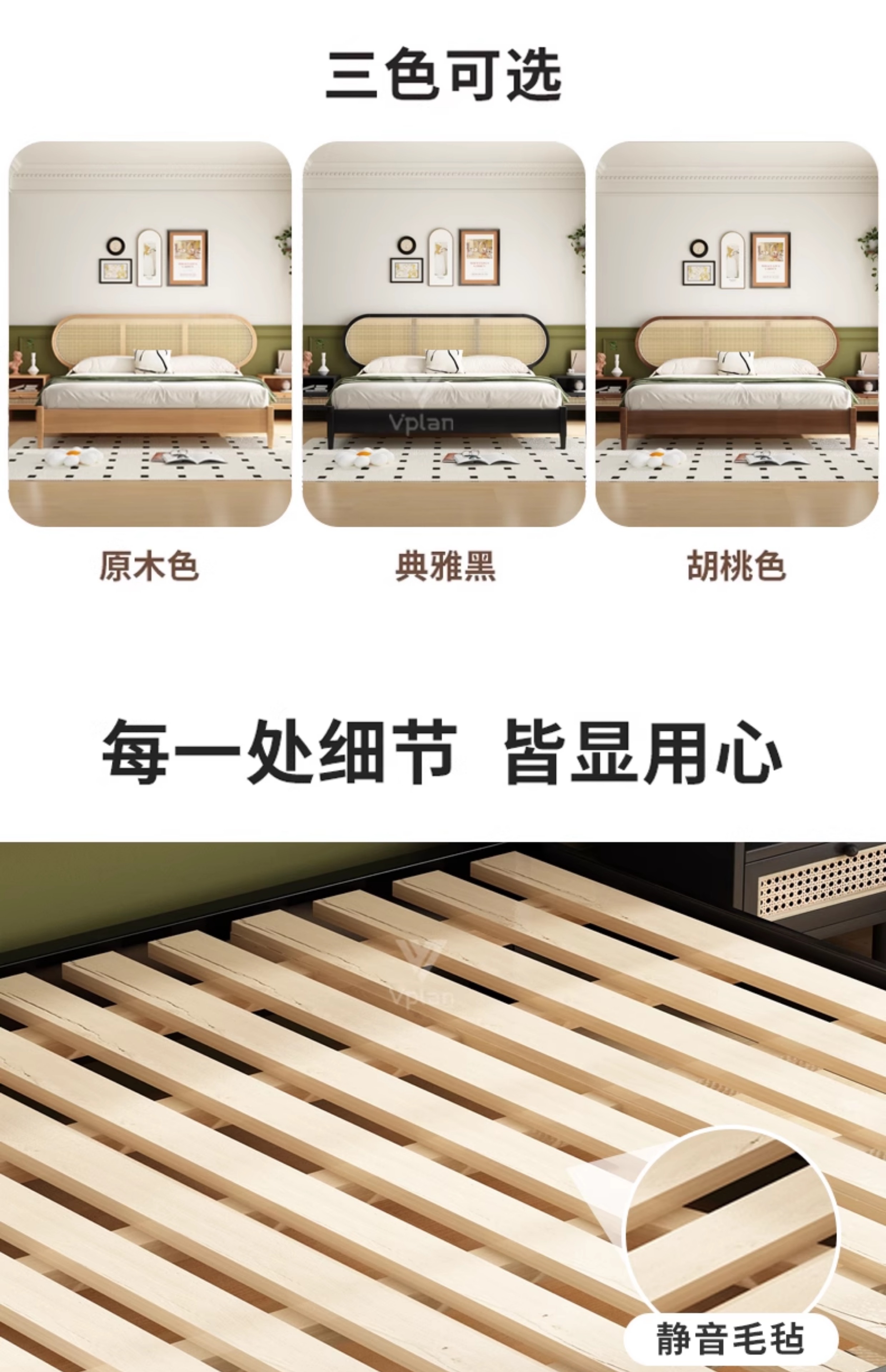 Государственная субсидированная антикварная стильная кровать из массива дерева и ротанга 1.8м двуспальная кровать, ретро ореховая простая мебель для B&B, скандинавская кровать