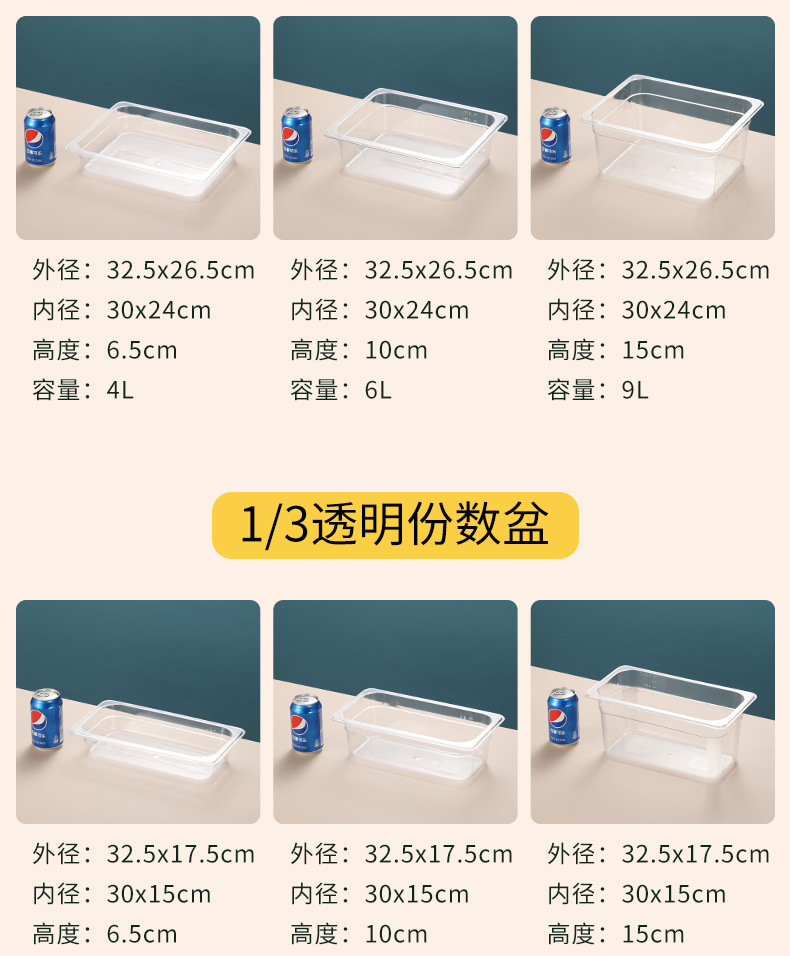 ![]() | Transparent pet | 1/3 portion pot 32.5*17.7*6.5 | ¥3.4 / ≈ 41 ₽ | 9999990 | 5949934609350 | |