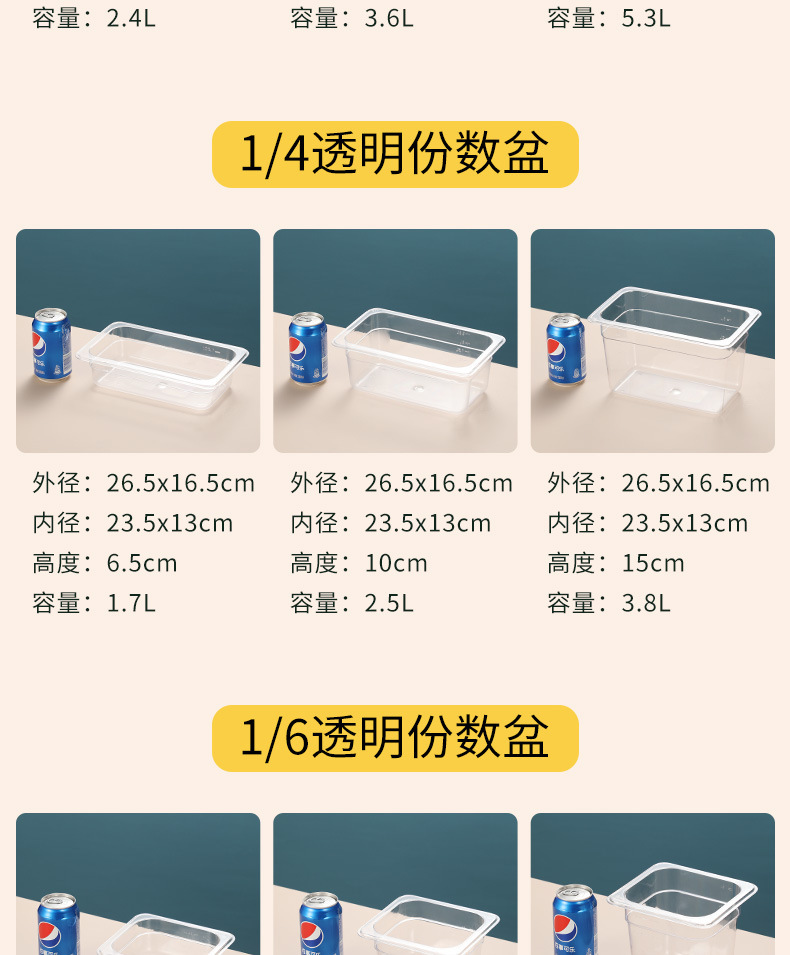 ![]() | Transparent pet | 1/6 portion pot 17.5*16*6.5 | ¥1.8 / ≈ 22 ₽ | 9999998 | 5949934609356 | |