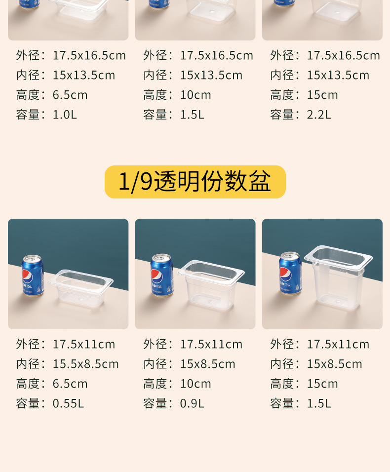 ![]() | Transparent pet | 1/9 portion basin 17.5*10.7*15 | ¥2.6 / ≈ 31 ₽ | 9999998 | 5949934609361 | |