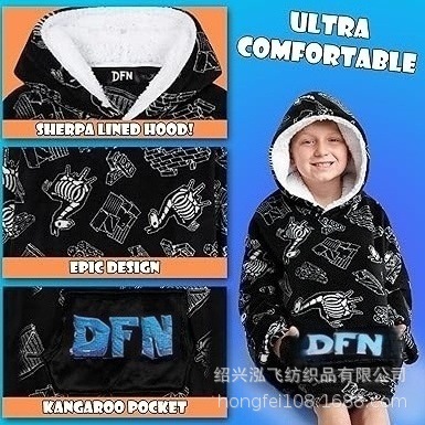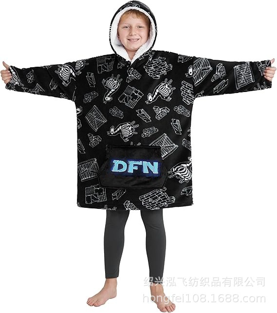 - 采用每个年轻游戏玩家都会喜欢的Fortnite主题印花,使这款超长连帽毯非常适合游戏迷,非常适合日常使用或休闲外出。