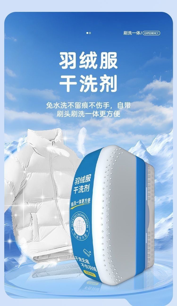 Специальное средство для сухой чистки без стирки для пуховиков, удаление пятен и жира, многофункциональная щетка для сухой чистки, новый стиль "всё в одном"