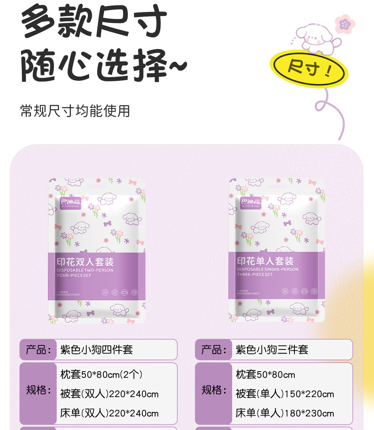 ![]() | Printed travel two-person four-piece set (lilac wang) | ¥9.31 / ≈ 112 ₽ | 99947 | 6115489099789 | |