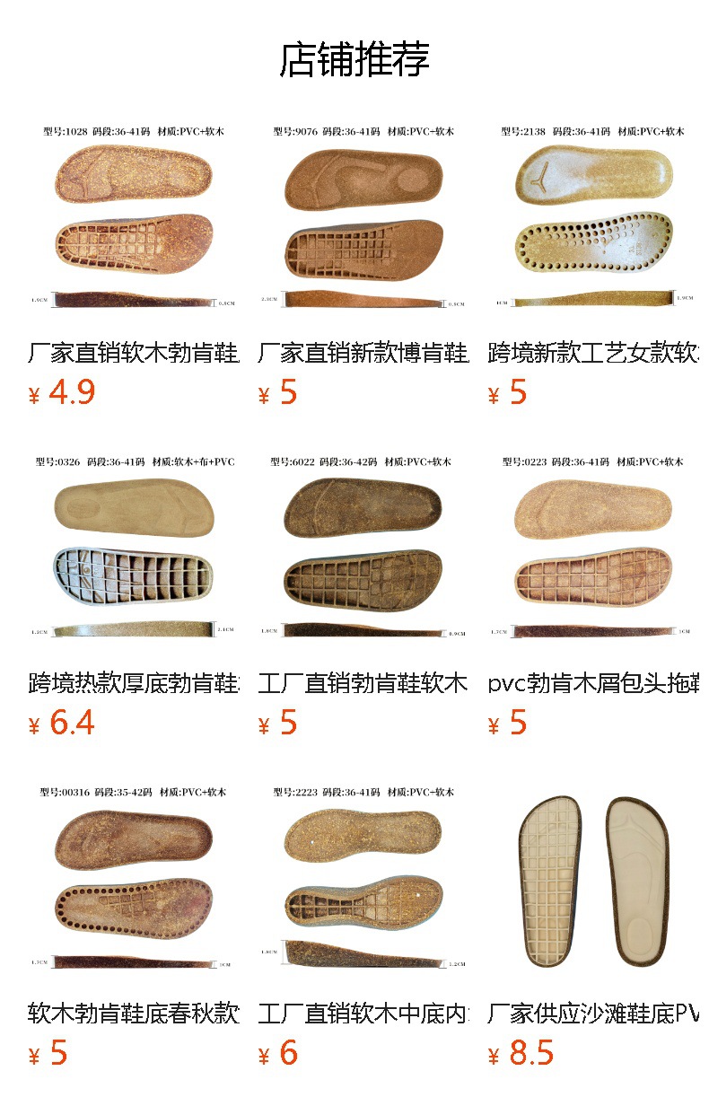![]() | 9076 birkenstock midsole [brown] | 37 | 800шт: ¥4.10, 5000шт: ¥4.00, 21000шт: ¥3.80 | 5000 | 5950087817571 | |