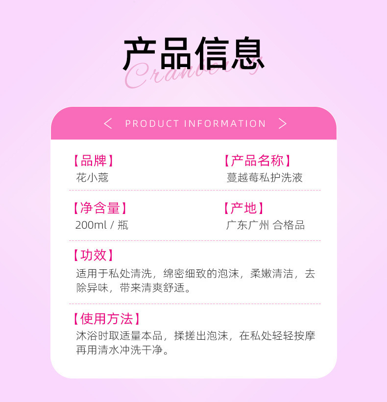 [Готово к продаже] Цветочное семя Клюквенный лосьон для интимной гигиены 200 мл Лосьон для женских интимных частей Очищающее средство