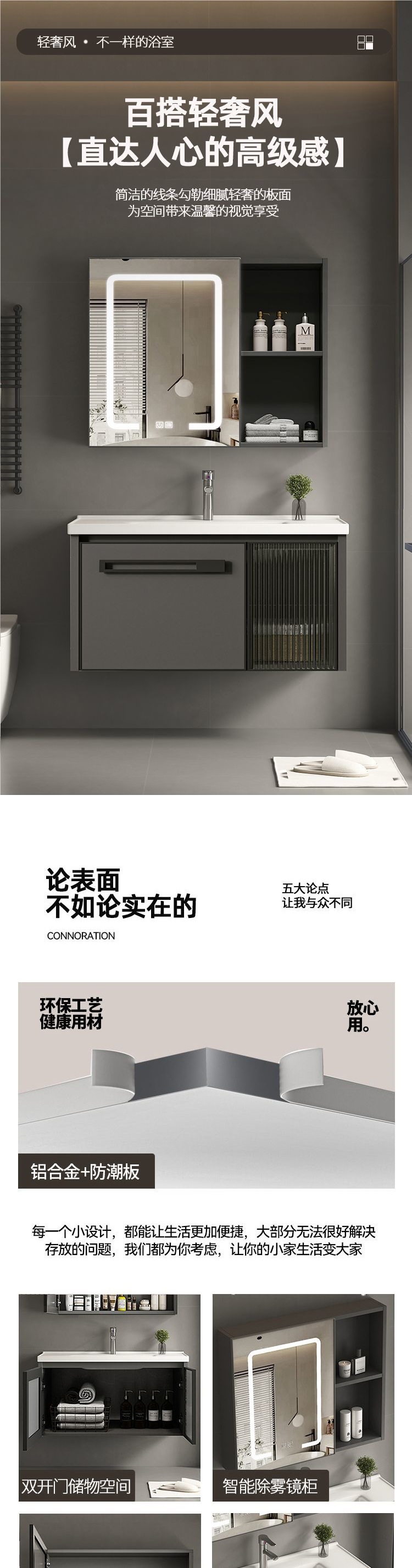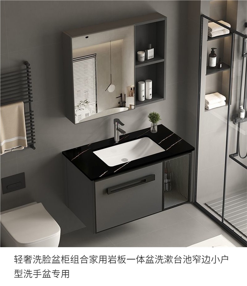 Шкаф для ванной из алюминия с интегрированным сланцевым умывальником узкий край для маленькой квартиры