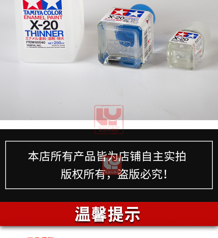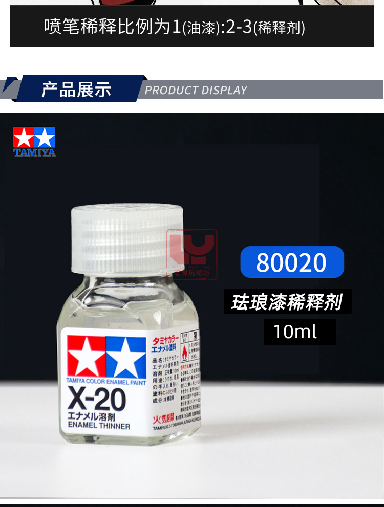 可稀释田宫珐琅漆(油性),在用田宫渗线液时,如果涂错也可用X-20擦拭