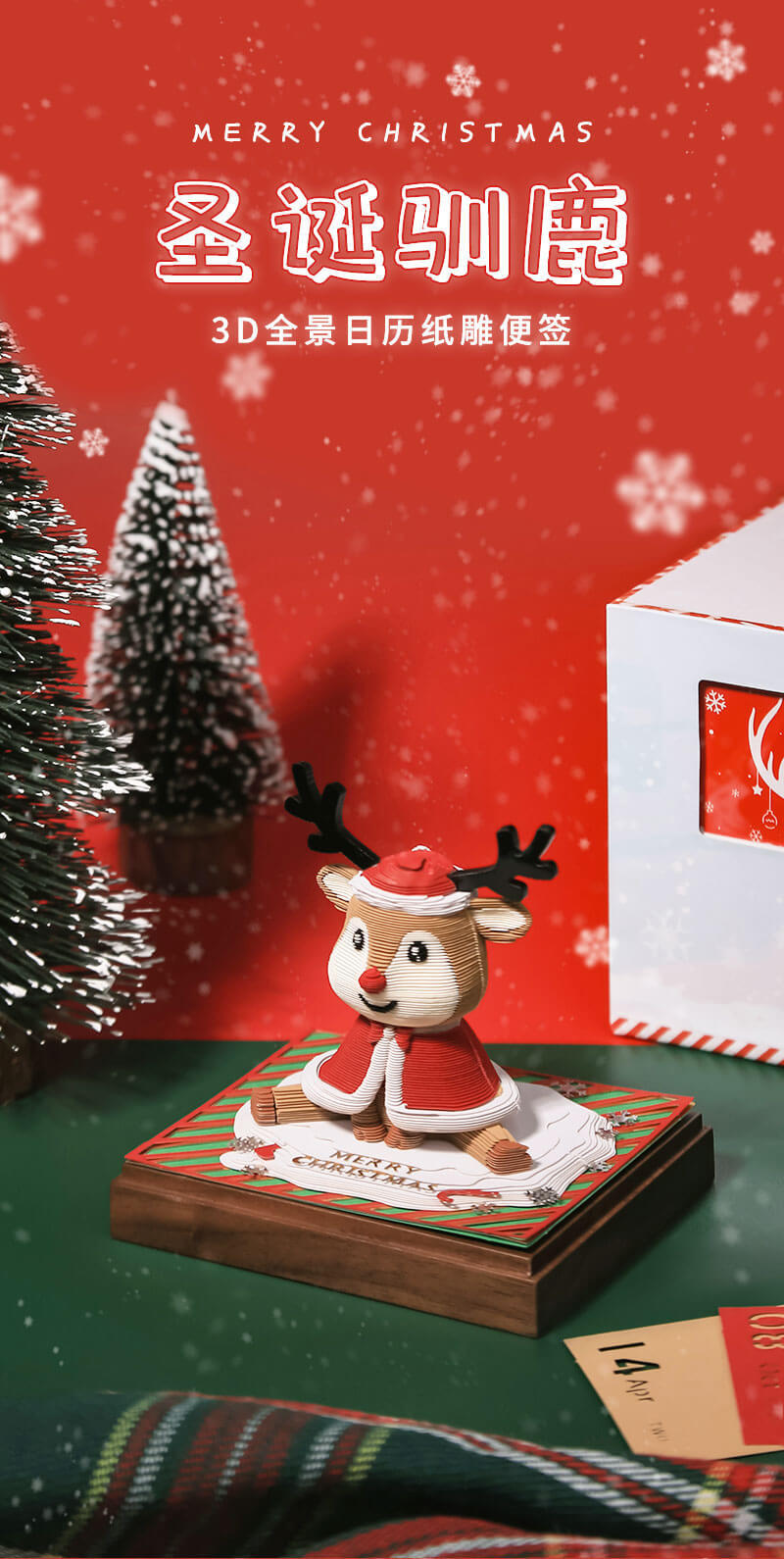 Рождественский олень 2026 панорамная деревянная основа трехмерная ручная резьба календарь подарок для дня рождения настольное украшение
