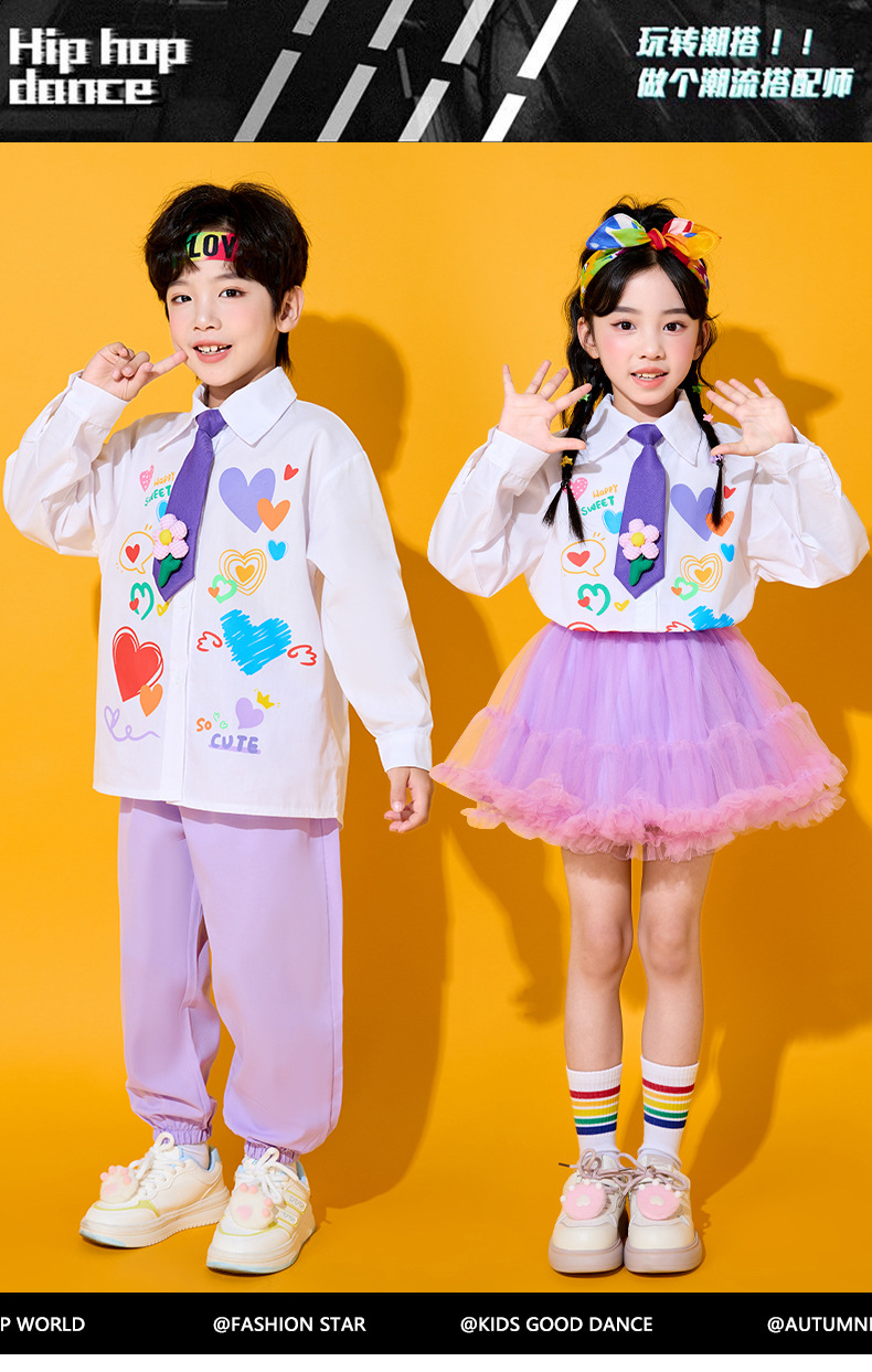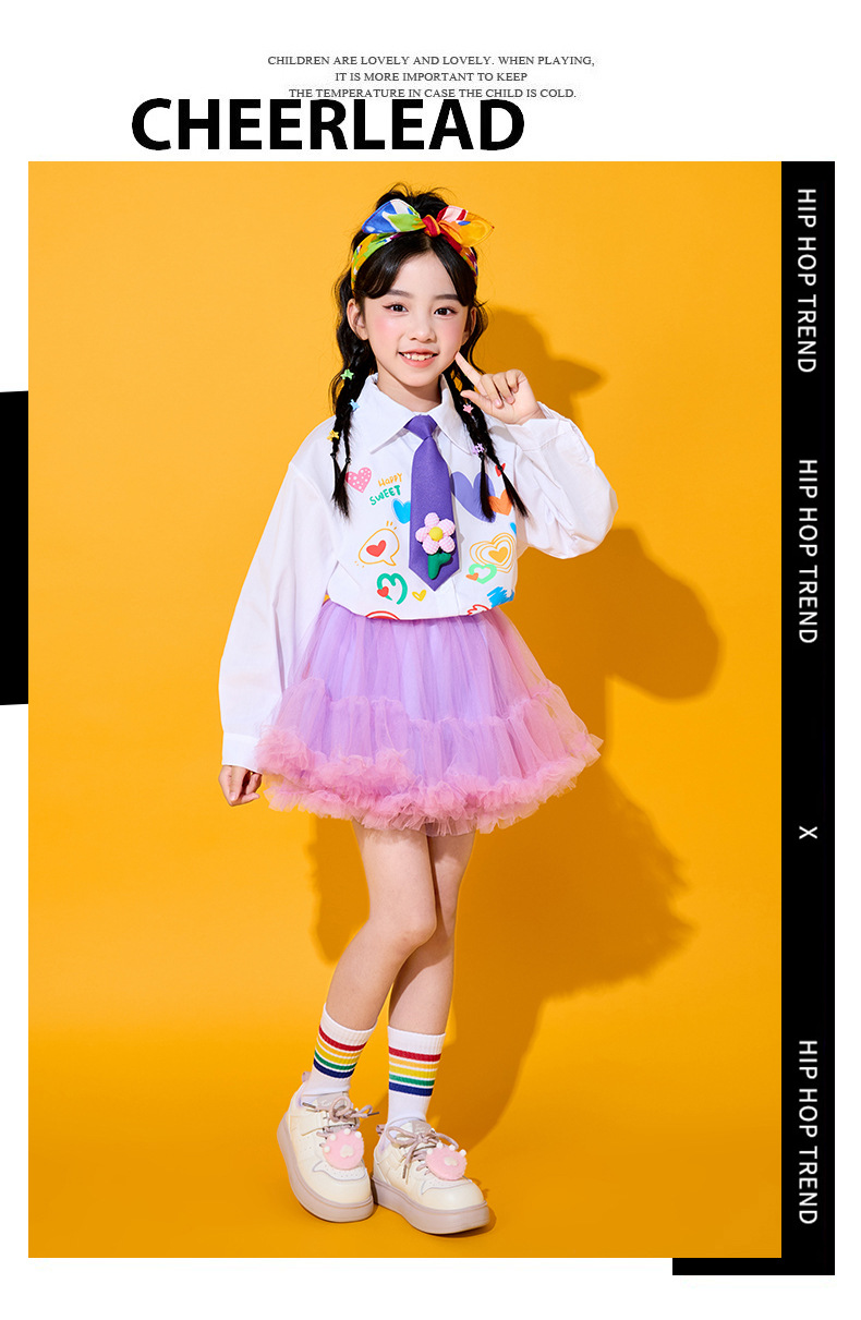 Костюмы для чирлидинга для детей, униформа для спортивных мероприятий учеников начальной школы, длинные рубашки с сердцем, костюмы для выступлений хора в детском саду