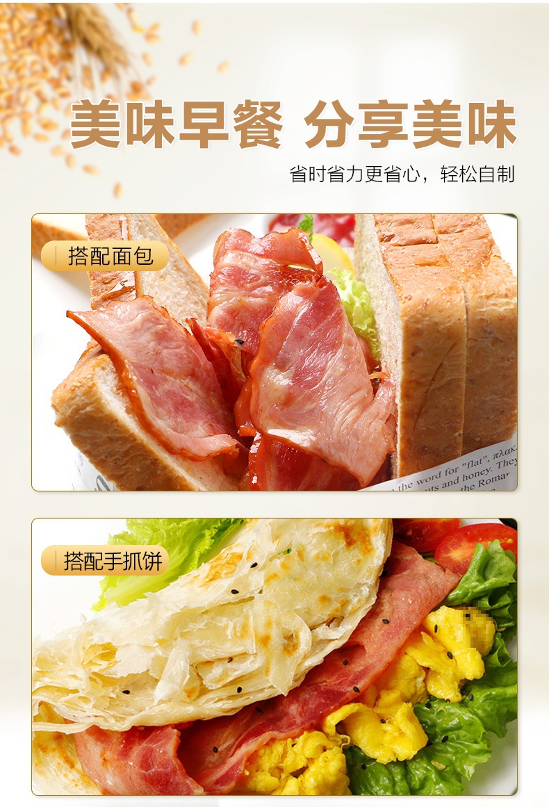 Нарезка бекона для завтрака, домашние блюда, оптовая упаковка, ингредиенты для барбекю, не низкокалорийная пицца