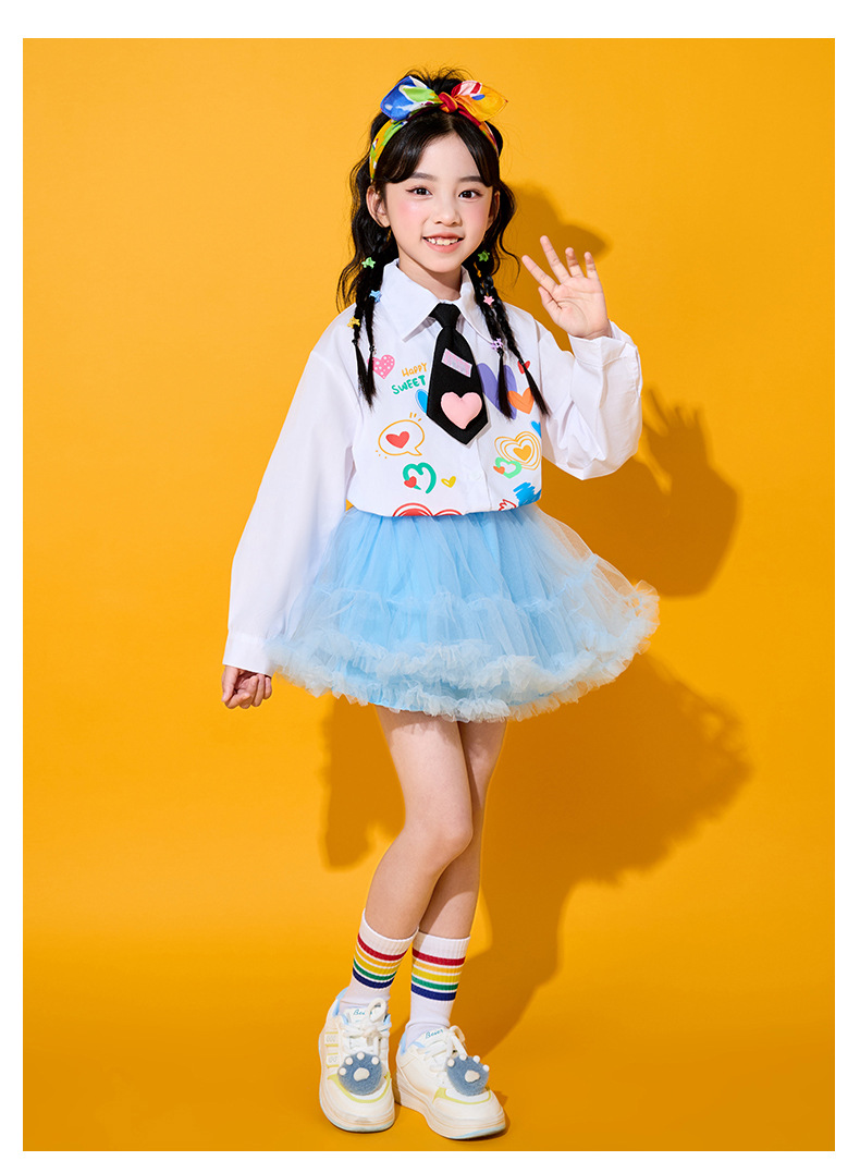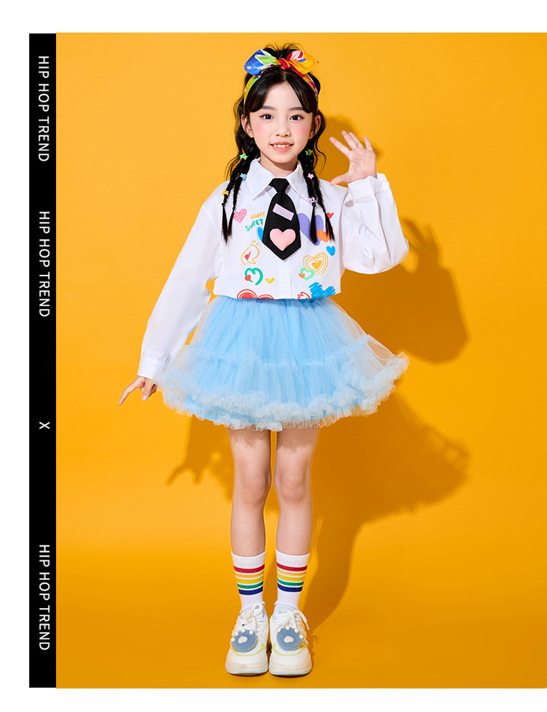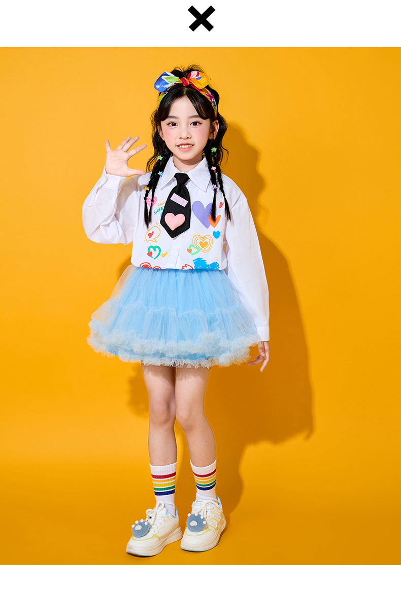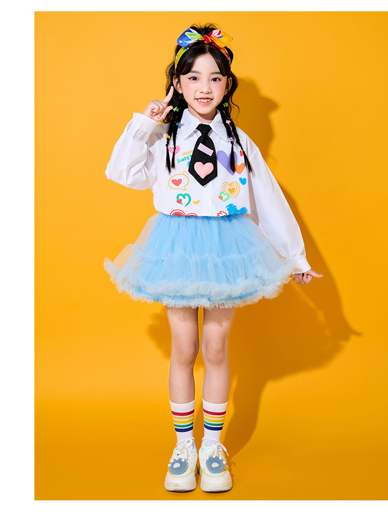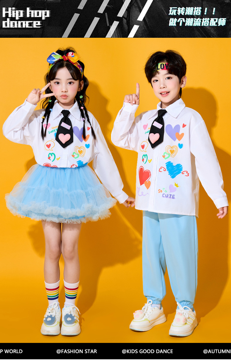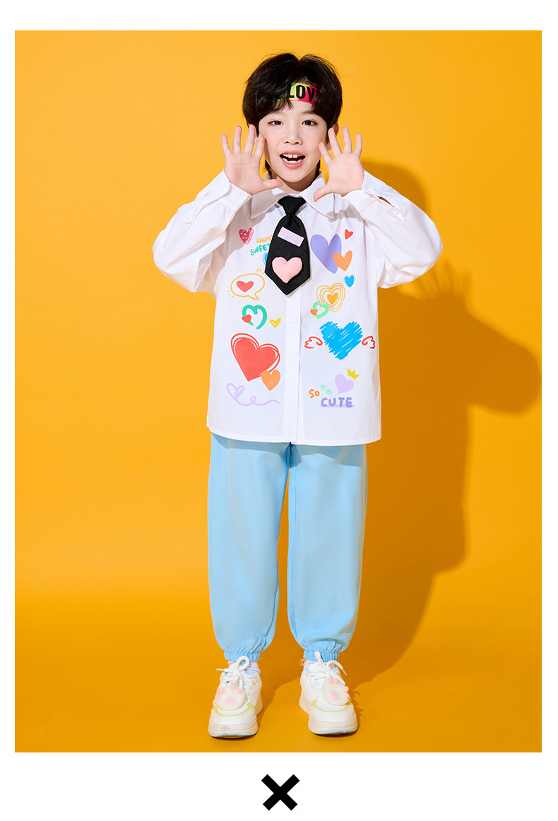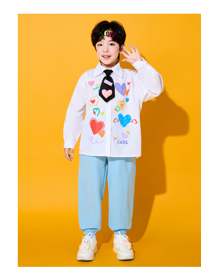 Костюмы для чирлидеров для детей, униформа для спортивных мероприятий начальной школы, футболки с длинным рукавом в форме сердца, костюмы для хоровых выступлений в детском саду