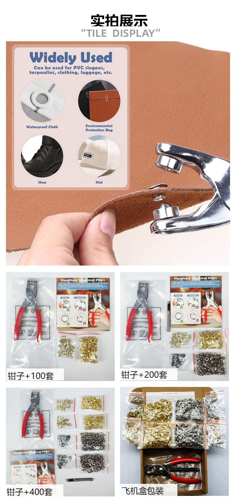 钳子+金银色气眼各100套(带底片)+冲子