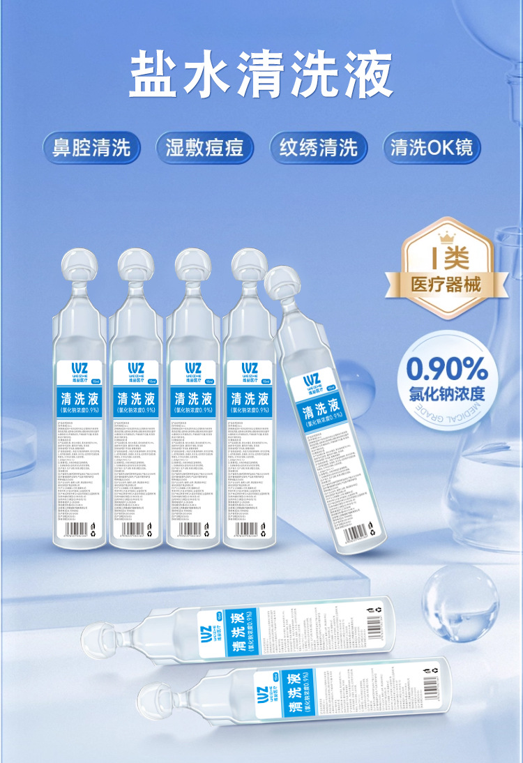 Физиологический солевой медицинский раствор для очистки Маленькая трубка для влажного компресса для лица Хлорид натрия Татуировка Вышивка Промывание носа 15 мл