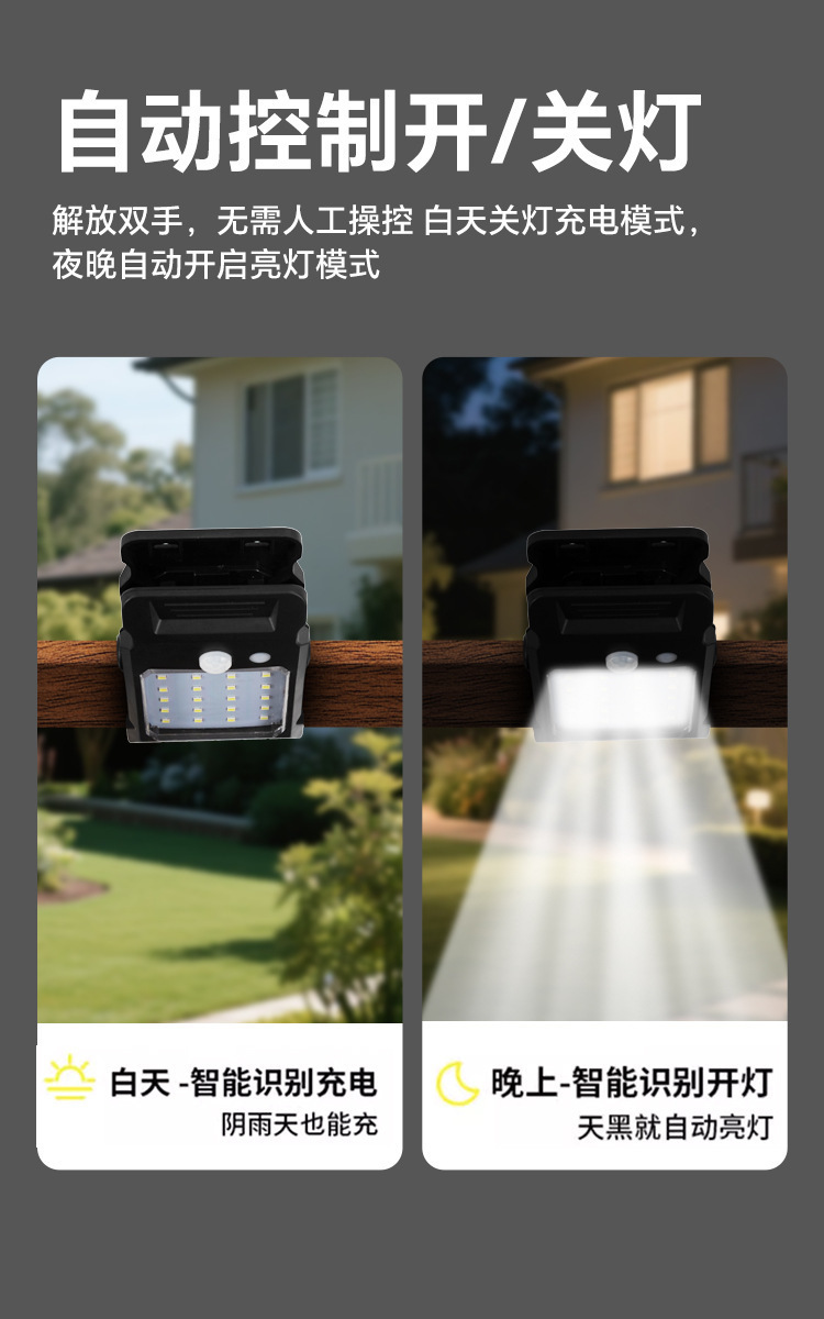 Солнечная уличная лампа для двора, атмосферное освещение, ультраяркая водонепроницаемая настенная лампа с датчиком движения, лампа для забора с зажимом