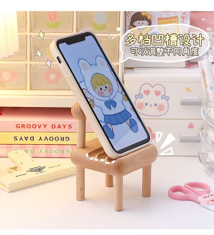 Маленький новый стул из массива дерева для настольного использования, мобильный телефон, маленький белый стул, подставка для планшета, удобная подставка, можно кастомизировать