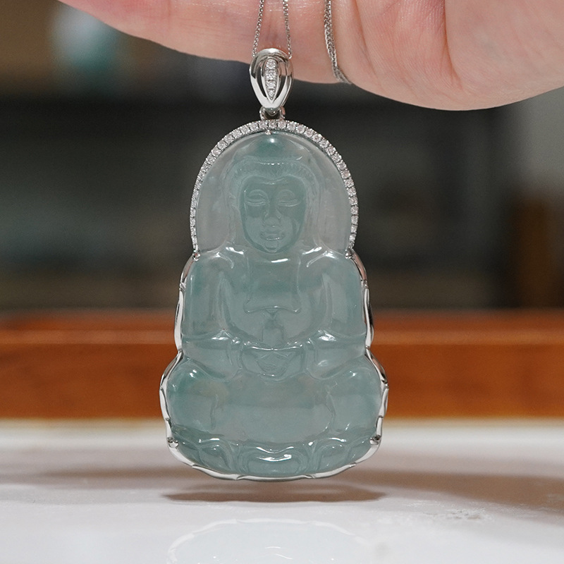 【PT950铂金】翡翠观音吊坠