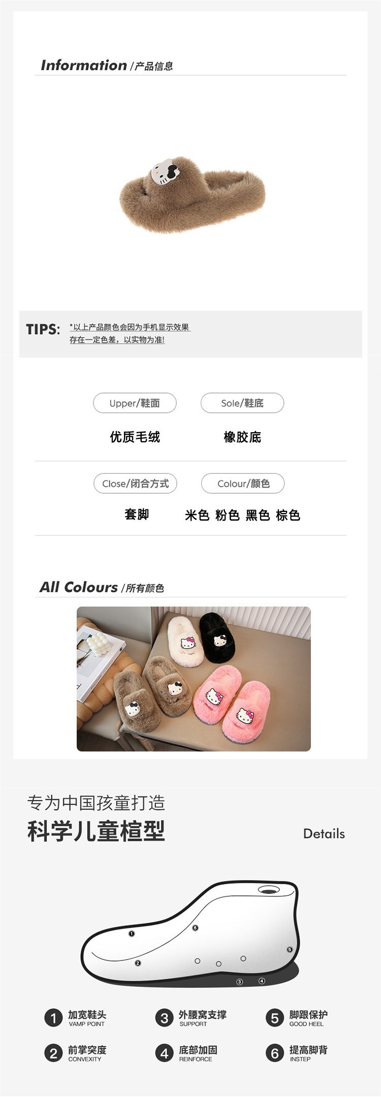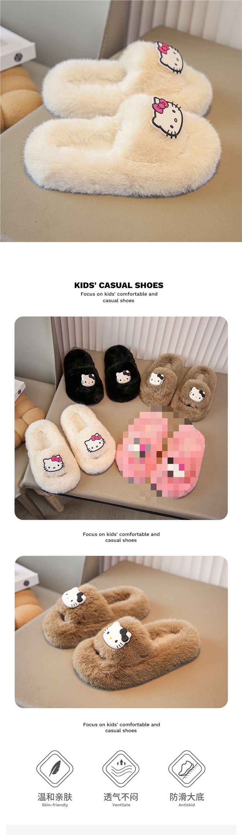 Тапочки с мягким мехом Hello Kitty, осенняя детская обувь 2023, домашние тапочки для девочек, милые принцессные тапочки из хлопка