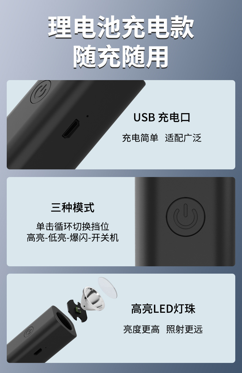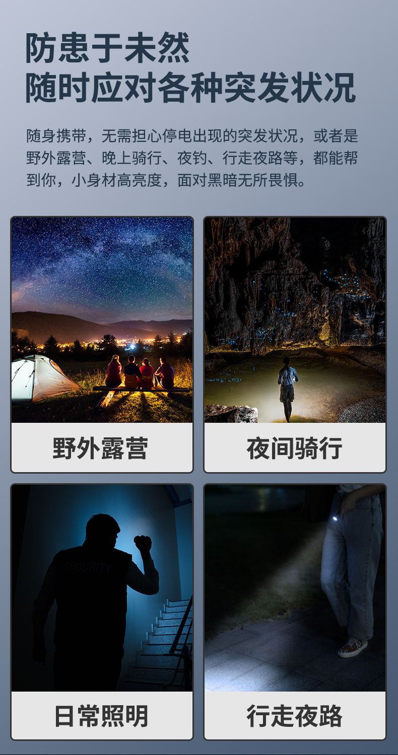 Мини-фонарь с ярким светом, USB перезаряжаемый, для улицы, экстренный, портативный, для студентов в общежитии