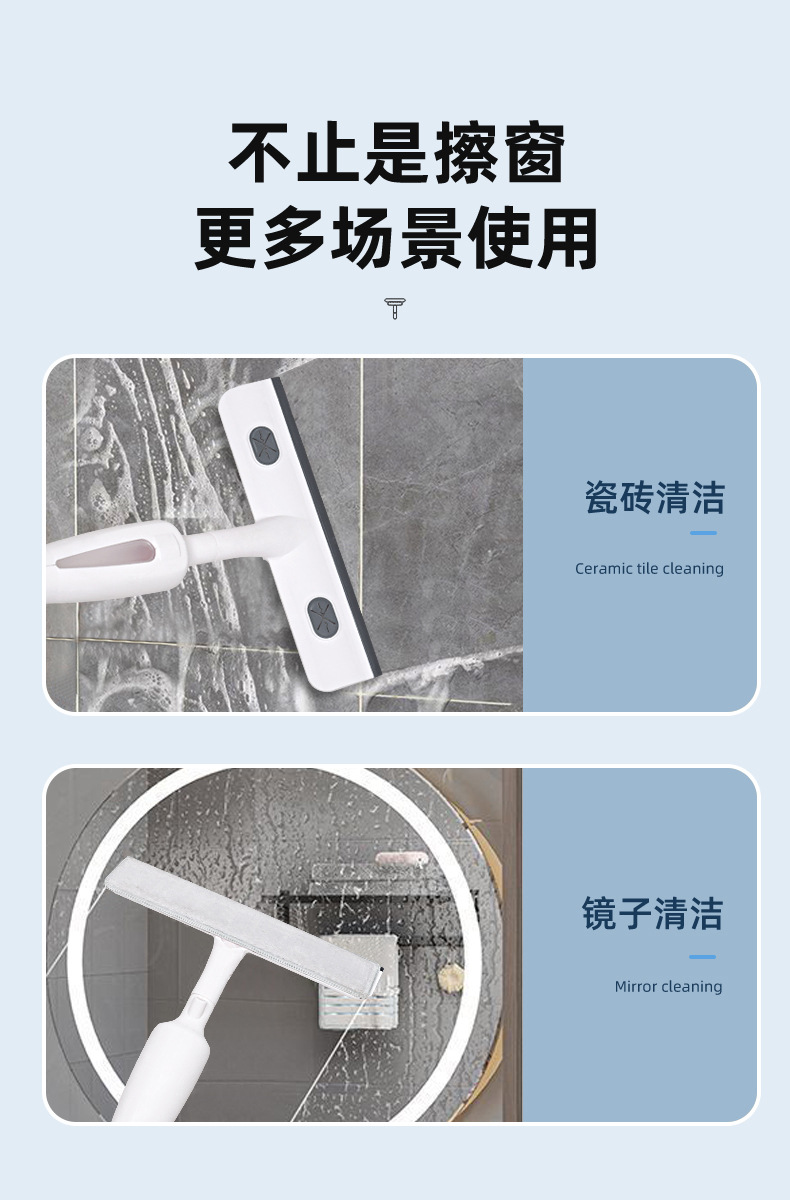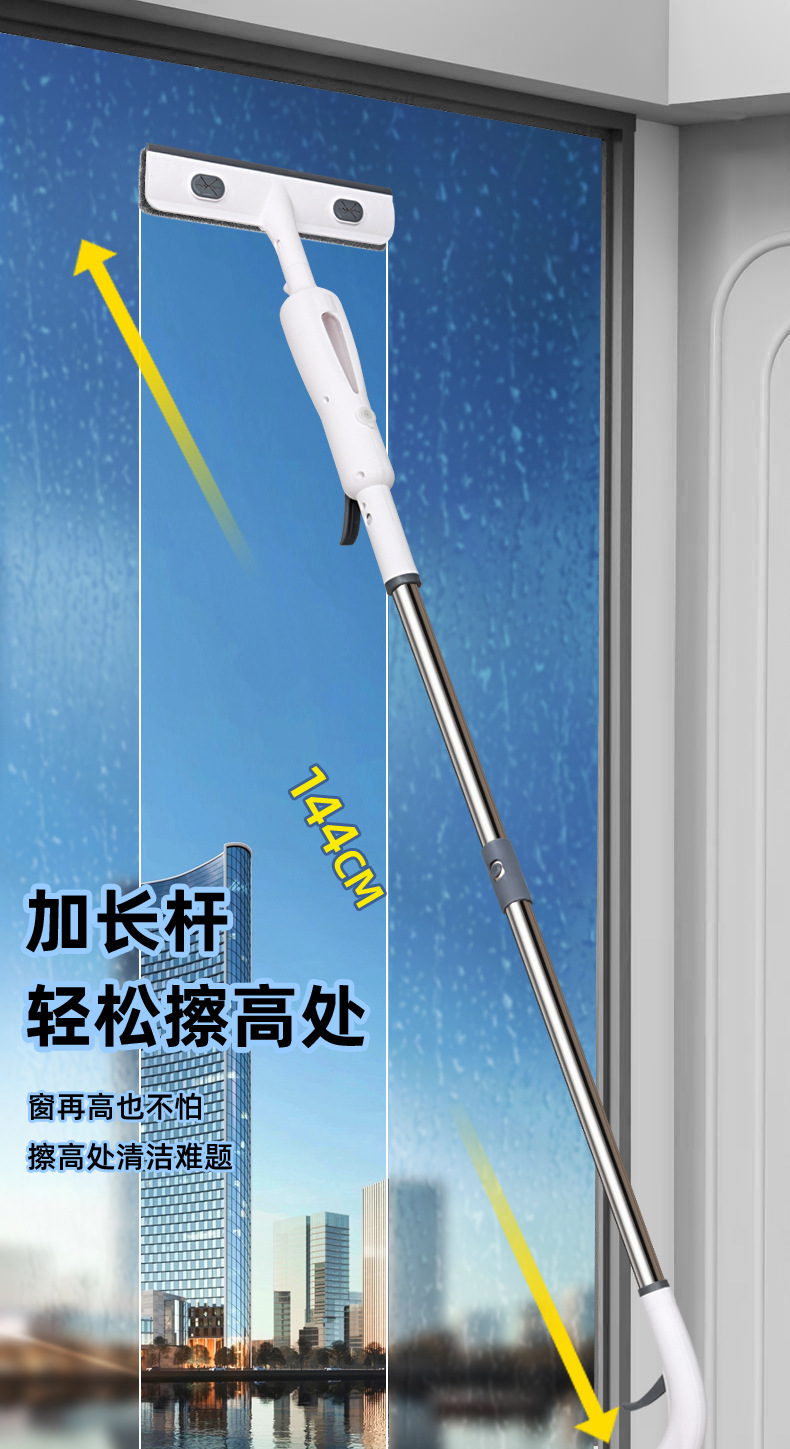 Стеклоочиститель с длинной ручкой, многофункциональный оконный очиститель, универсальный двухсторонний стеклоочиститель с распылителем воды