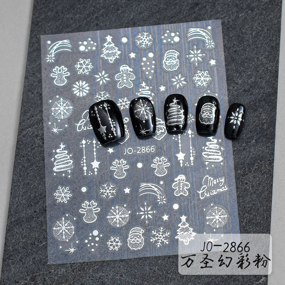 Наклейки для ногтей на тему Рождества Серебристый лук Розовая снежинка Рождественская елка Наклейки для ногтей в стильном дизайне