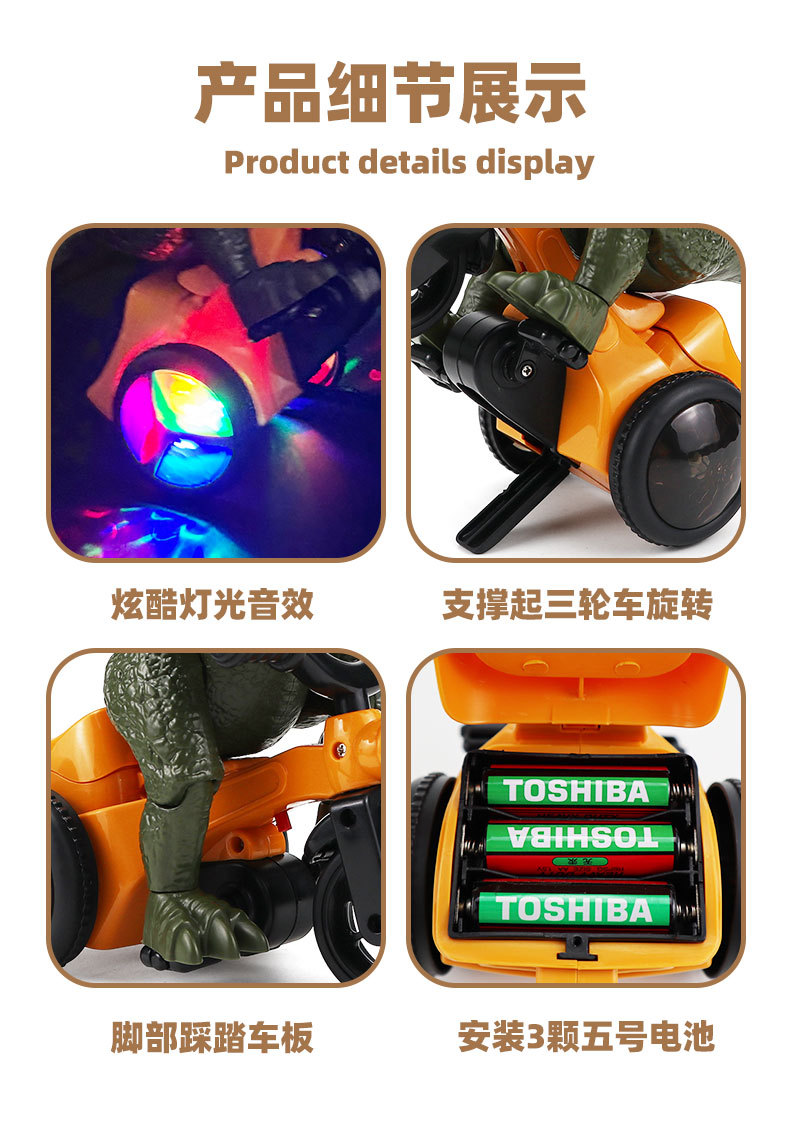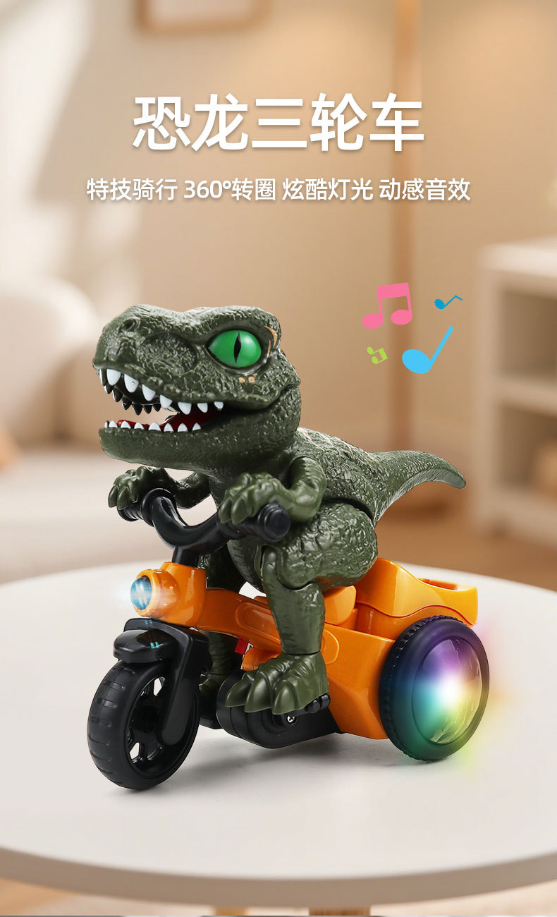 Новый трюк 360° вращающийся динозавр трицикл электрическая игрушка, свет и музыка, оптовая продажа детских игрушек