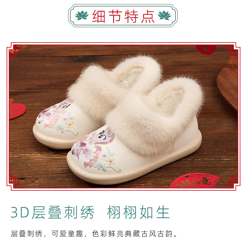 Зимние детские удобные костюмные туфли 2025 года, утепленные флисом, утолщенные, нескользящие, в древнем стиле, хлопковые туфли династии Хань из микрофибры
