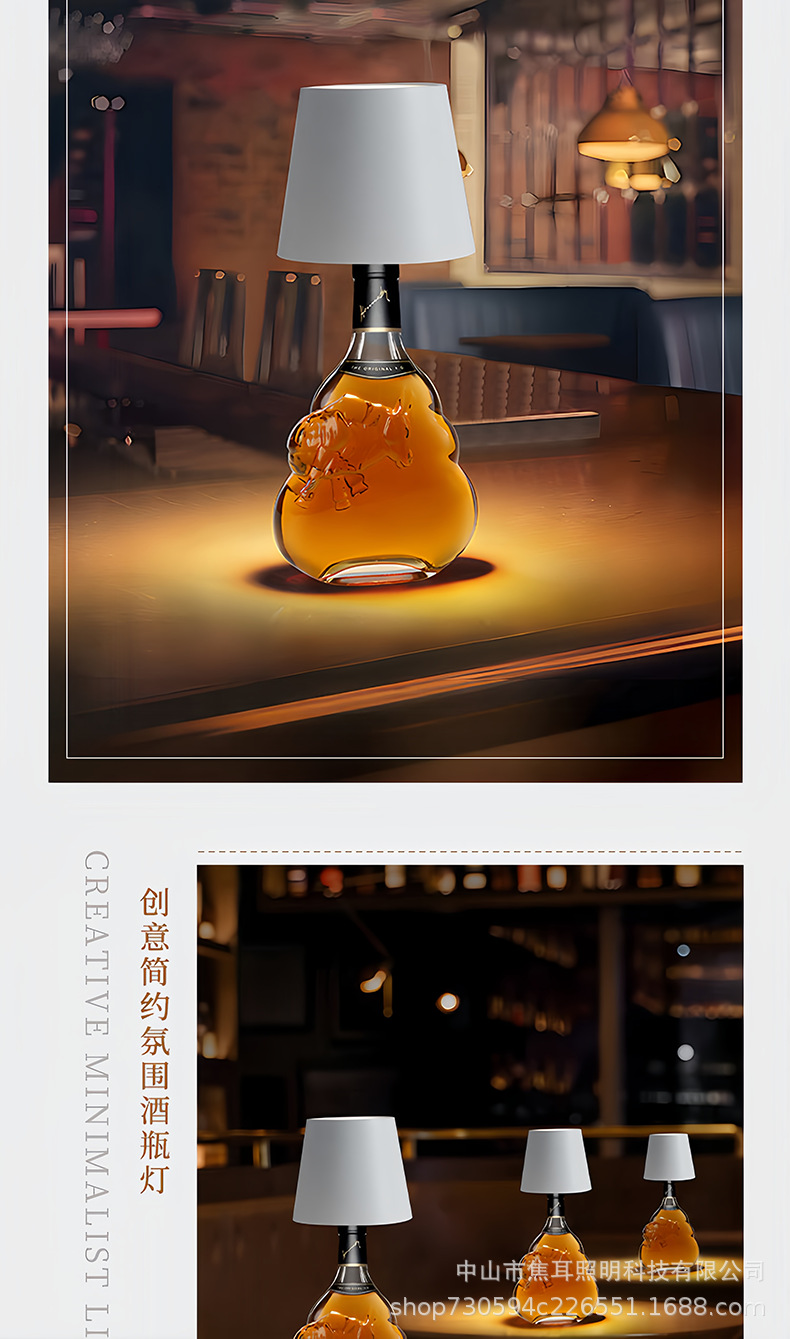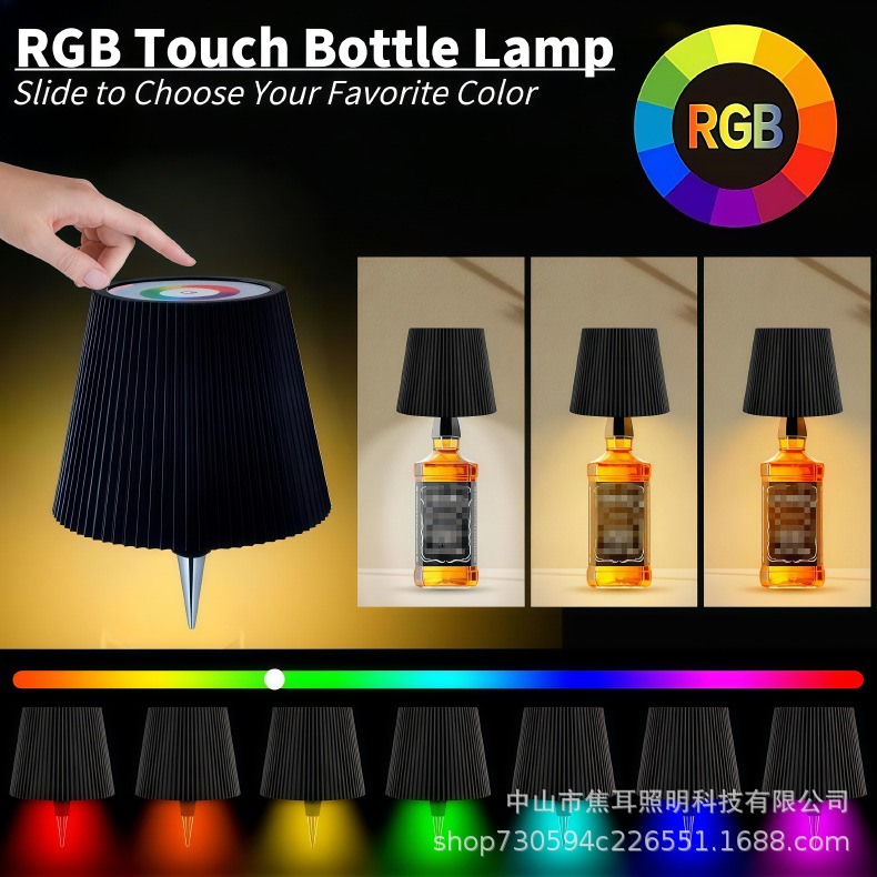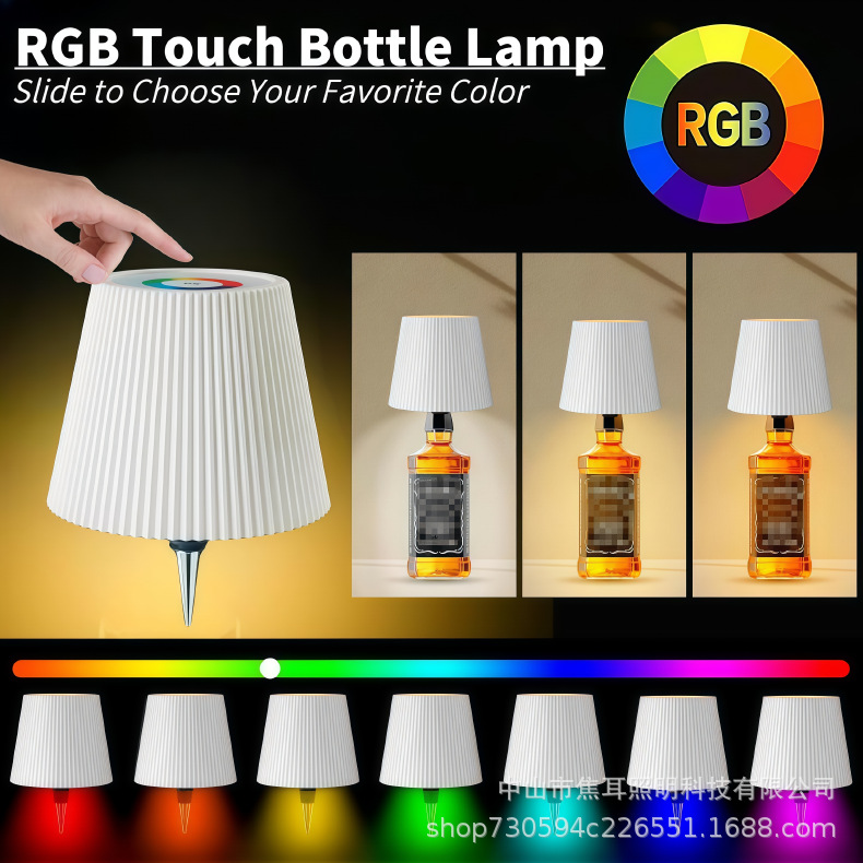 Лампа из винной бутылки, кросс-бордерная перезаряжаемая настольная лампа, декор для бара и ресторана, RGB цветная атмосферная лампа, ночник с подключением