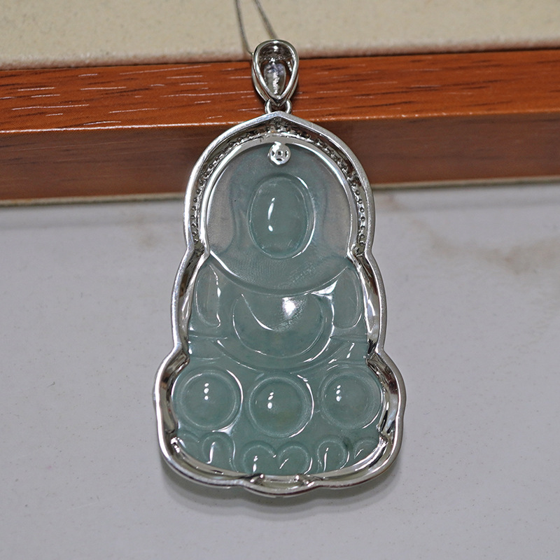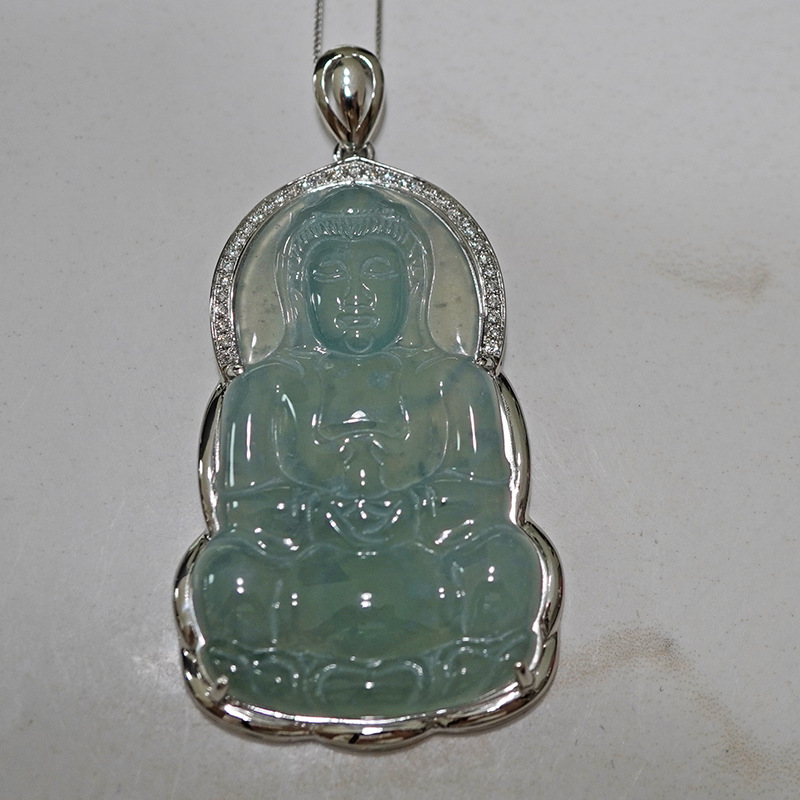 Подвеска из платины Pt950 с культивированным бриллиантом, нефритовая Гуаньинь, инкрустированная полным бриллиантом