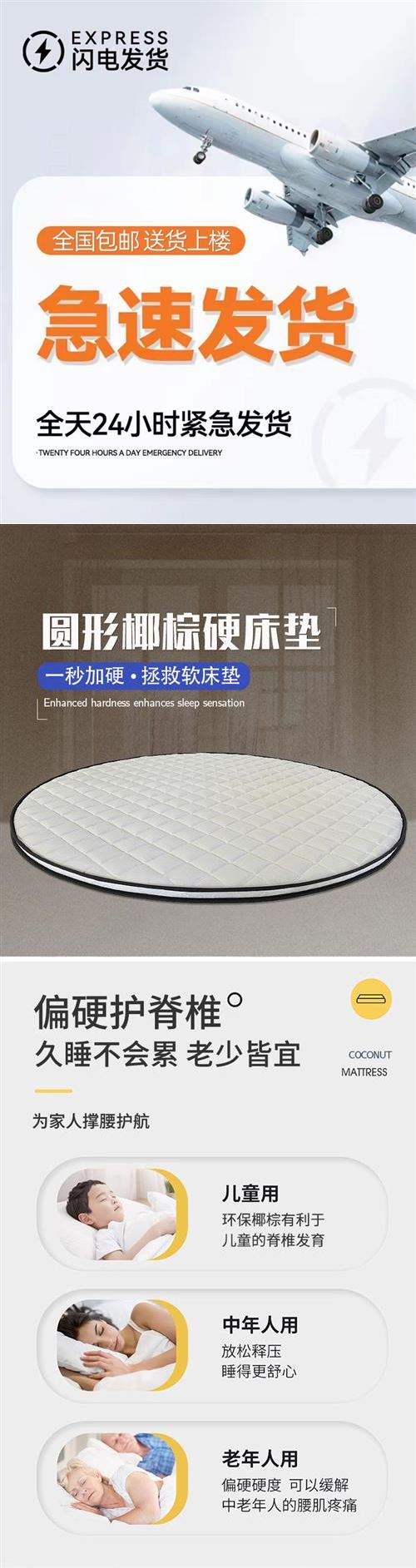 Круглый матрас из кокосовой пальмы, круглый, плюс жесткий, 2м, 2.2м, тонкий, складной