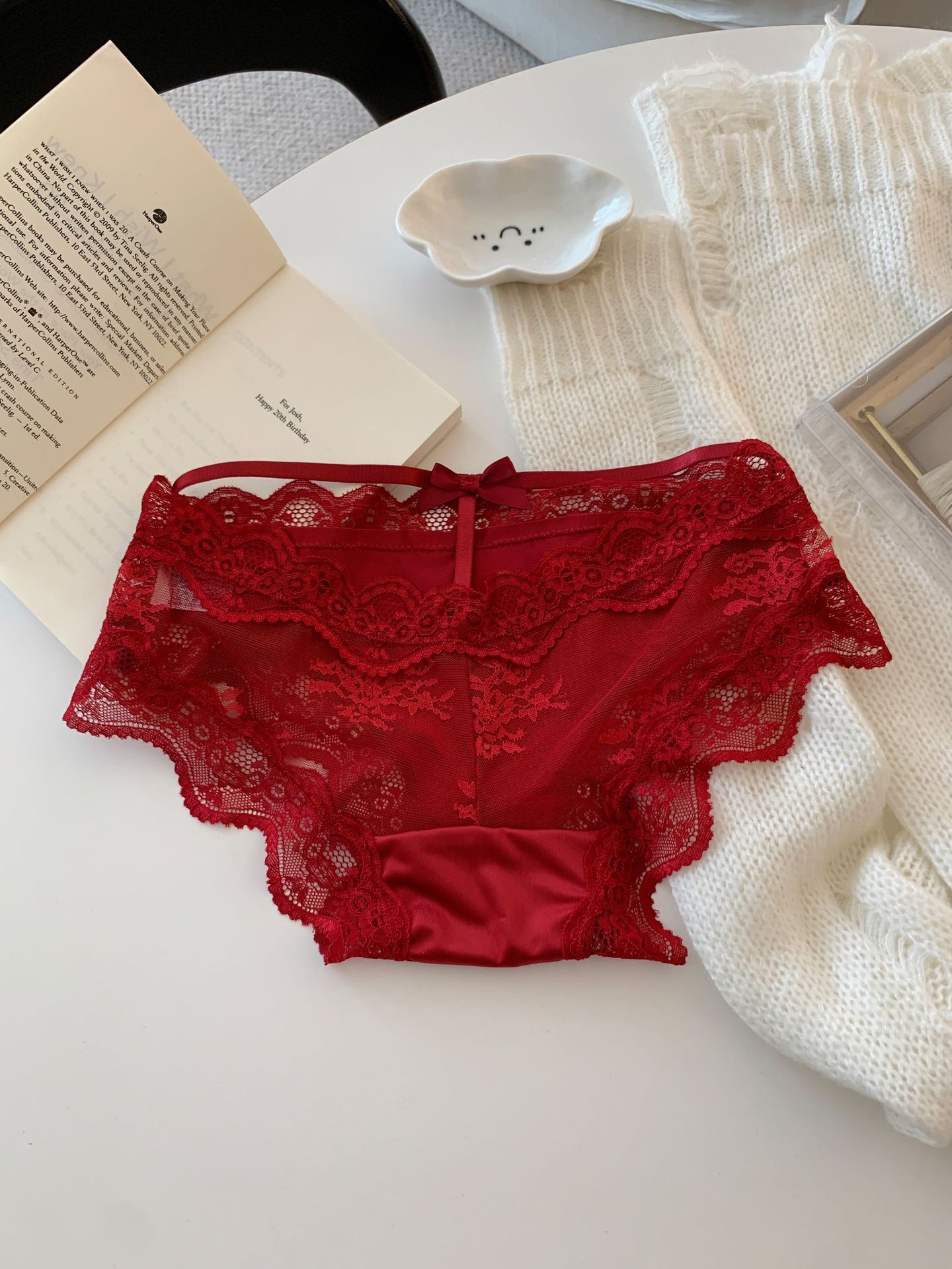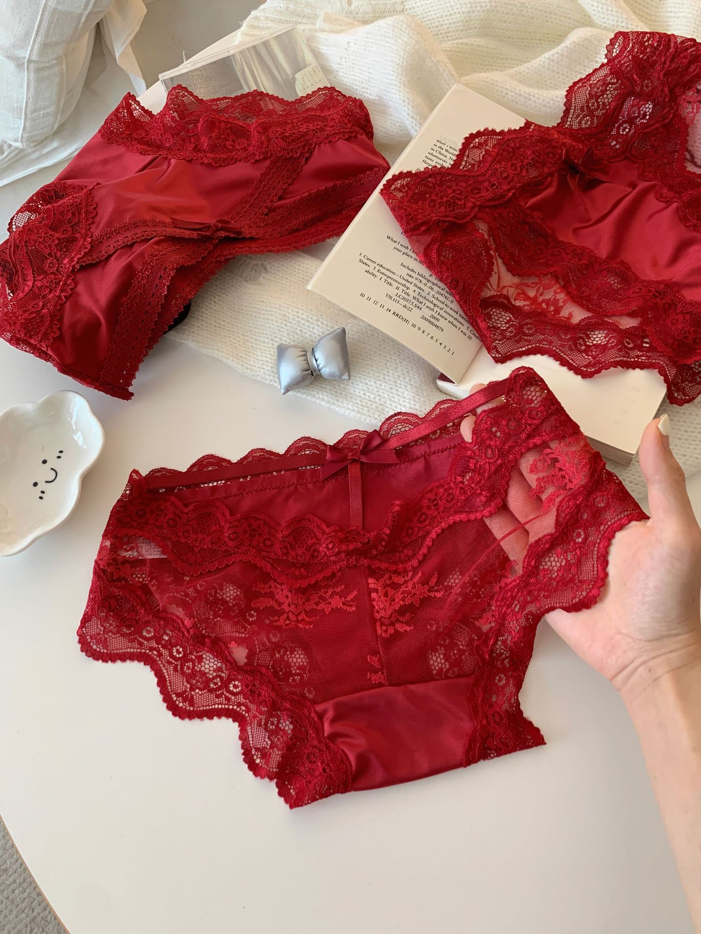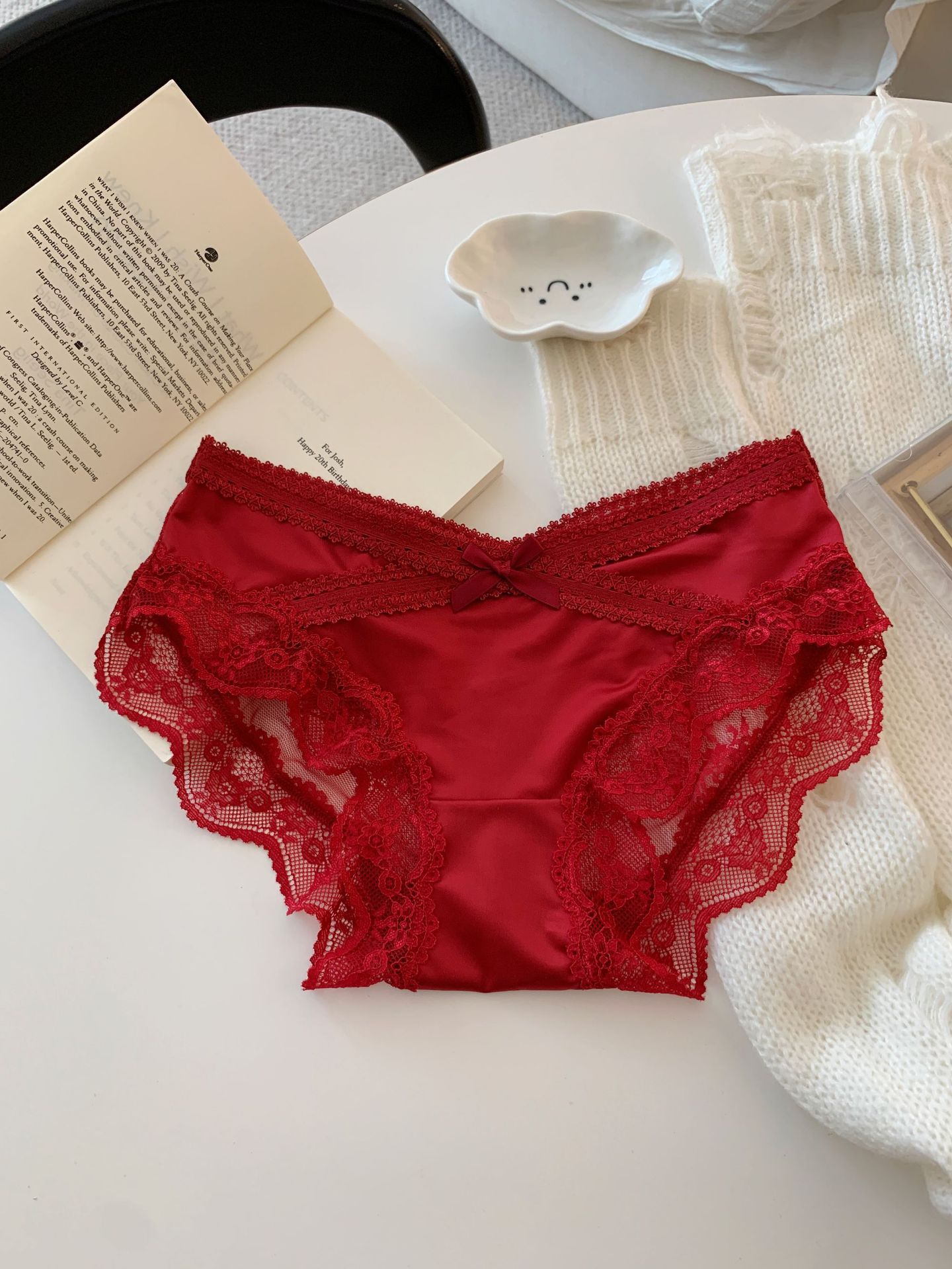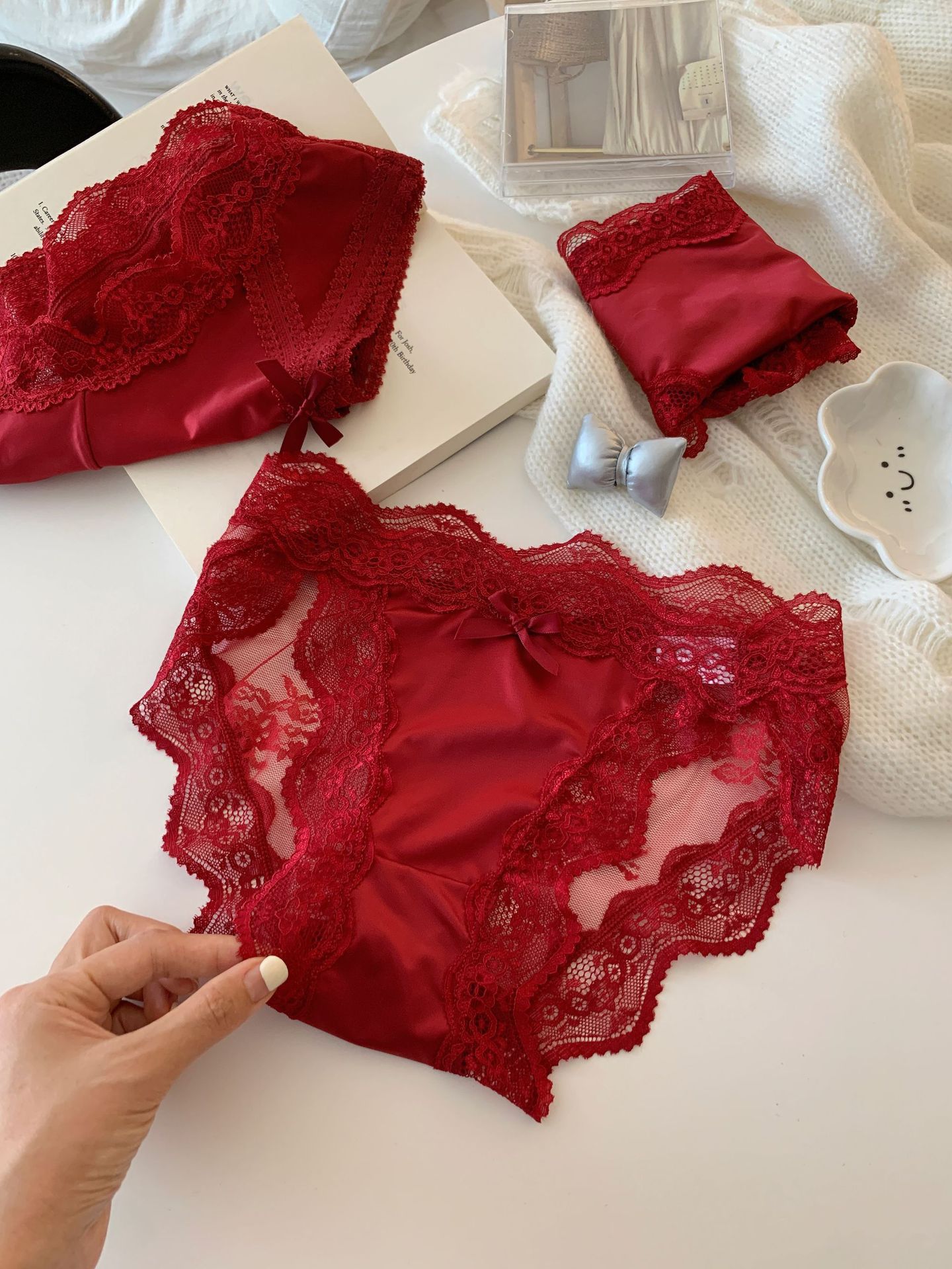 Красные шелковые фантазийные кружевные трусики низкой посадки для женщин, сексуальные свадебные трусики "Год змеи"