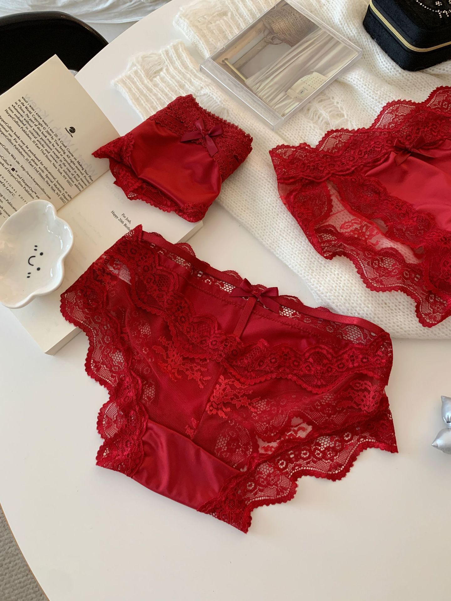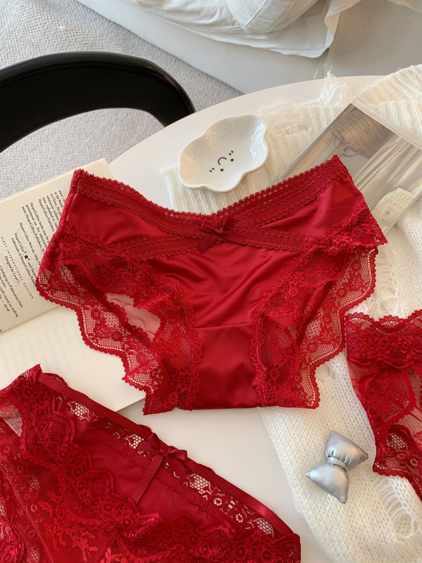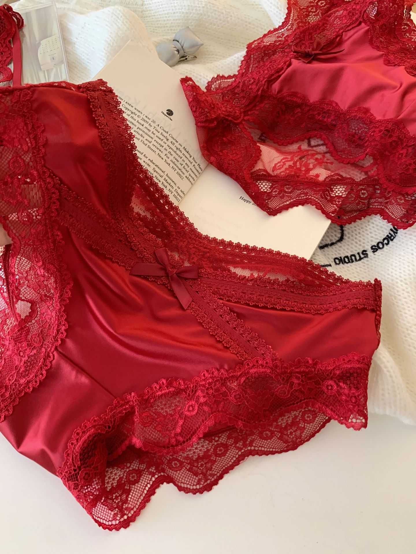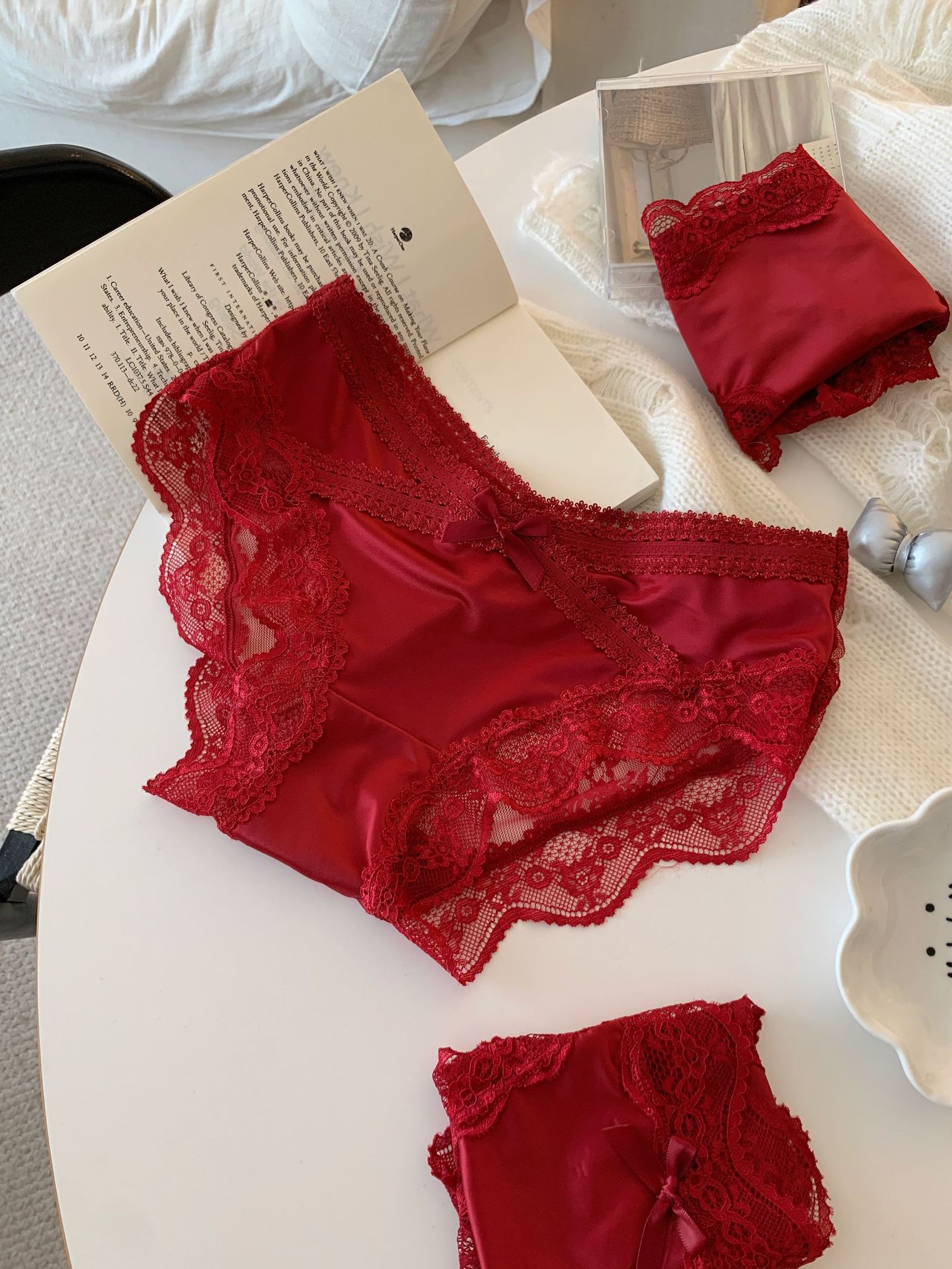 Красные шелковые фантазийные кружевные трусики низкой посадки для женщин, сексуальные свадебные трусики "Год змеи"
