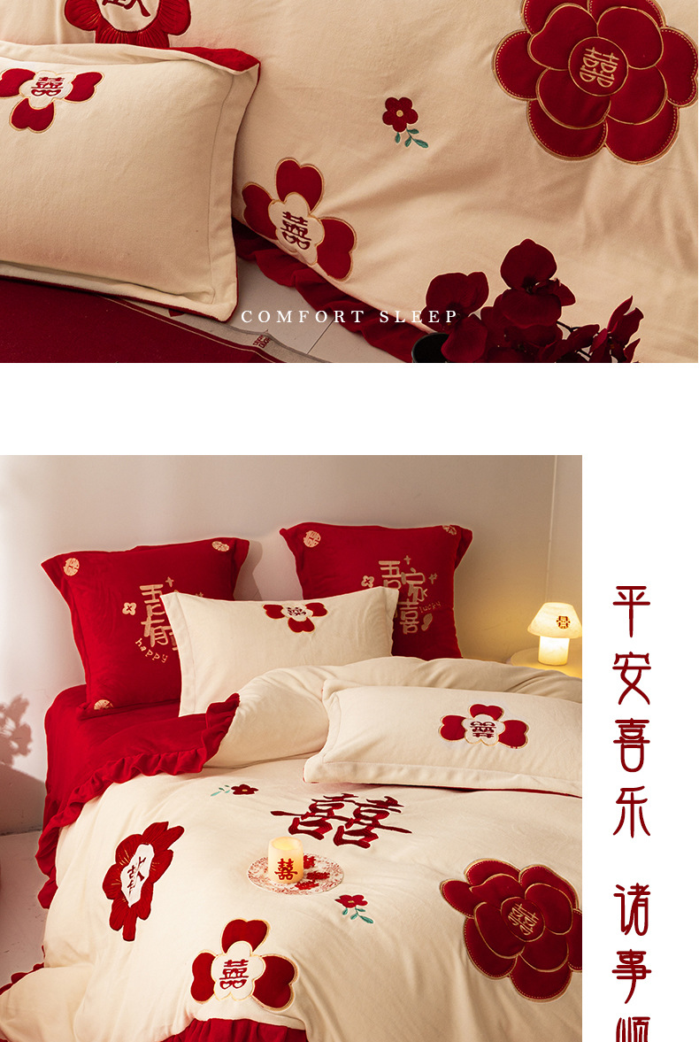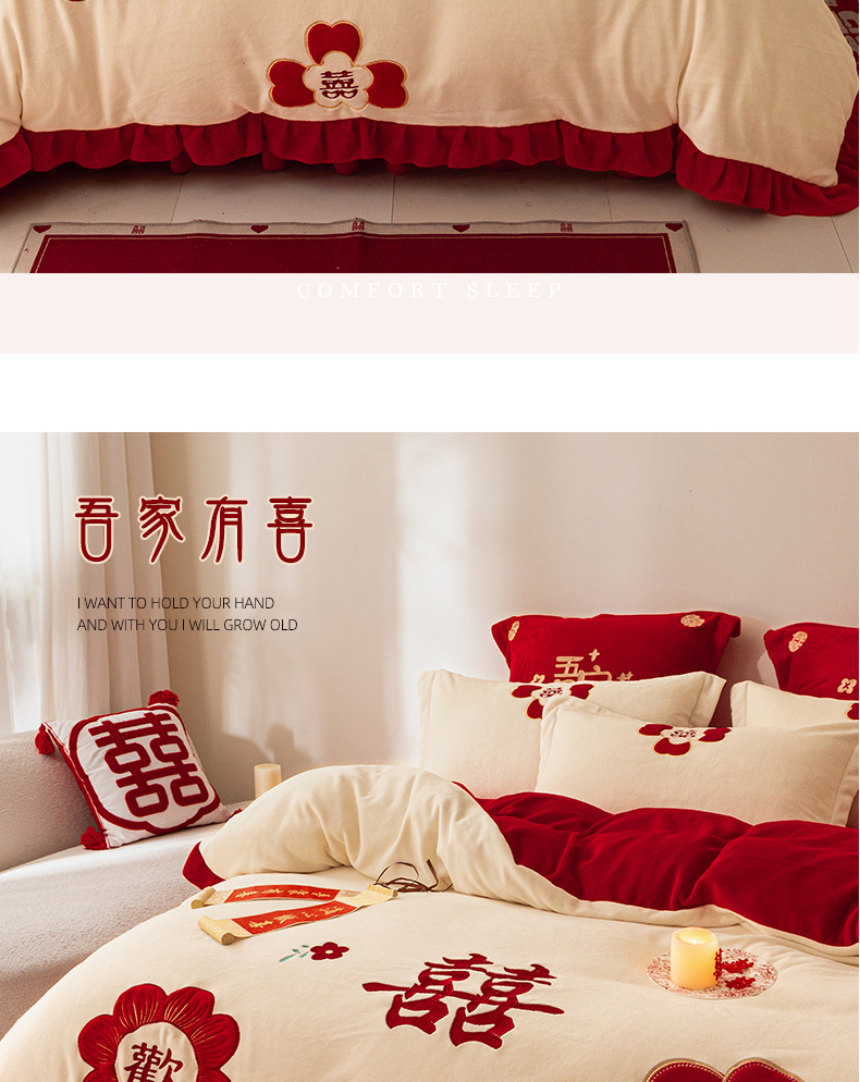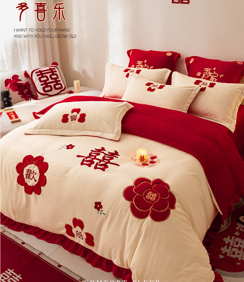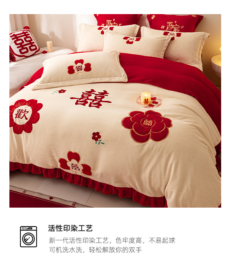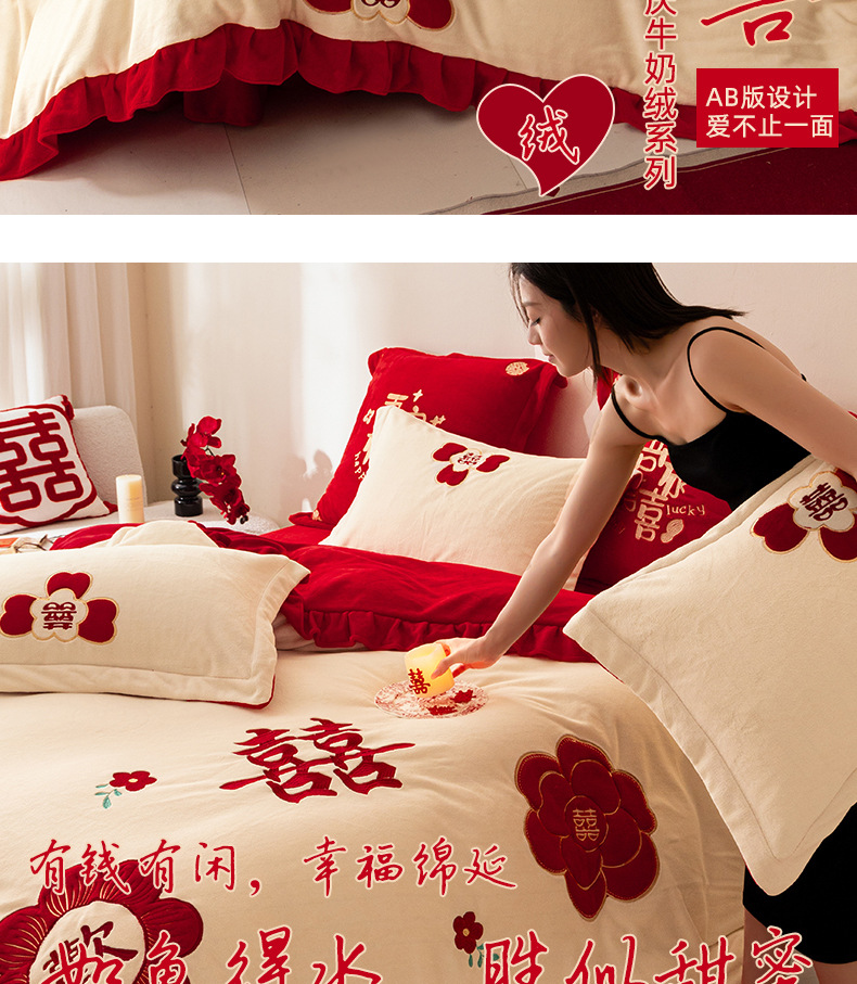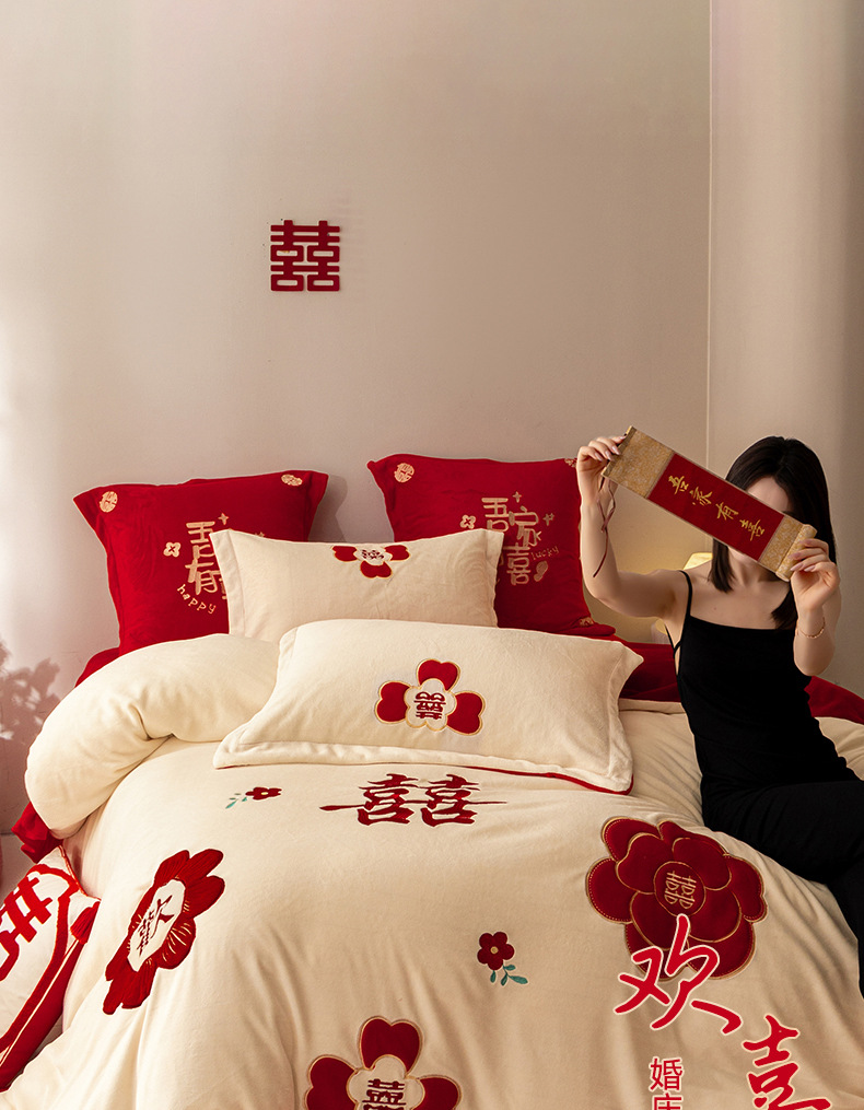 Комплект из четырех предметов для новобрачных, молочный бархат, двустороннее покрывало для зимы, коралловое бархатное постельное белье, красное свадебное покрывало, приданое