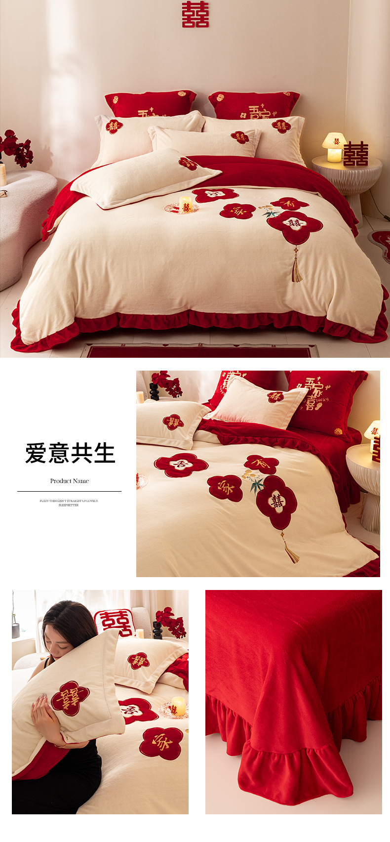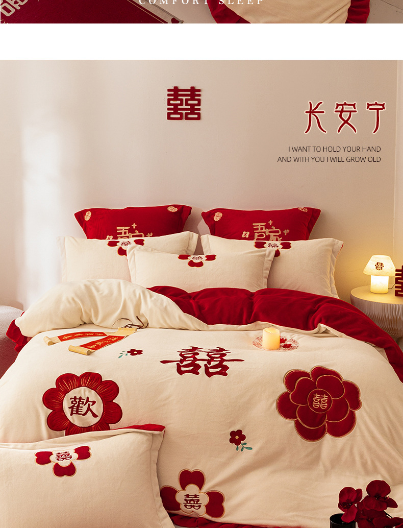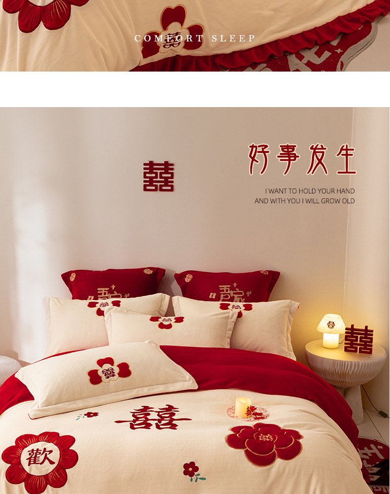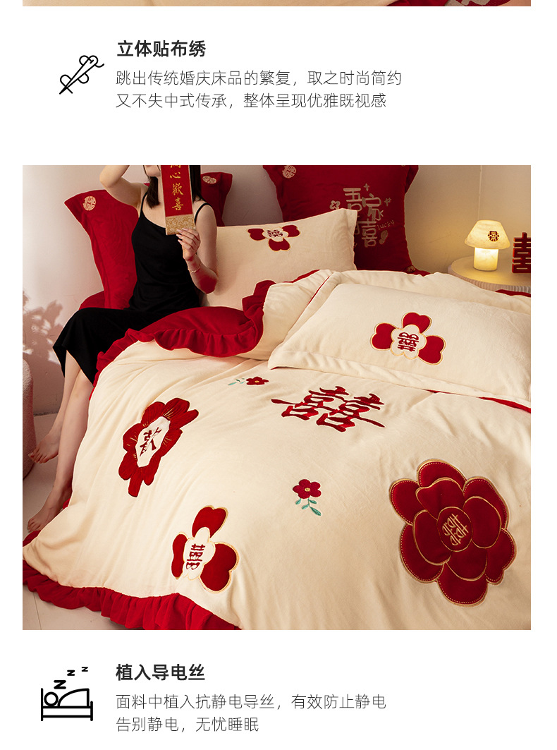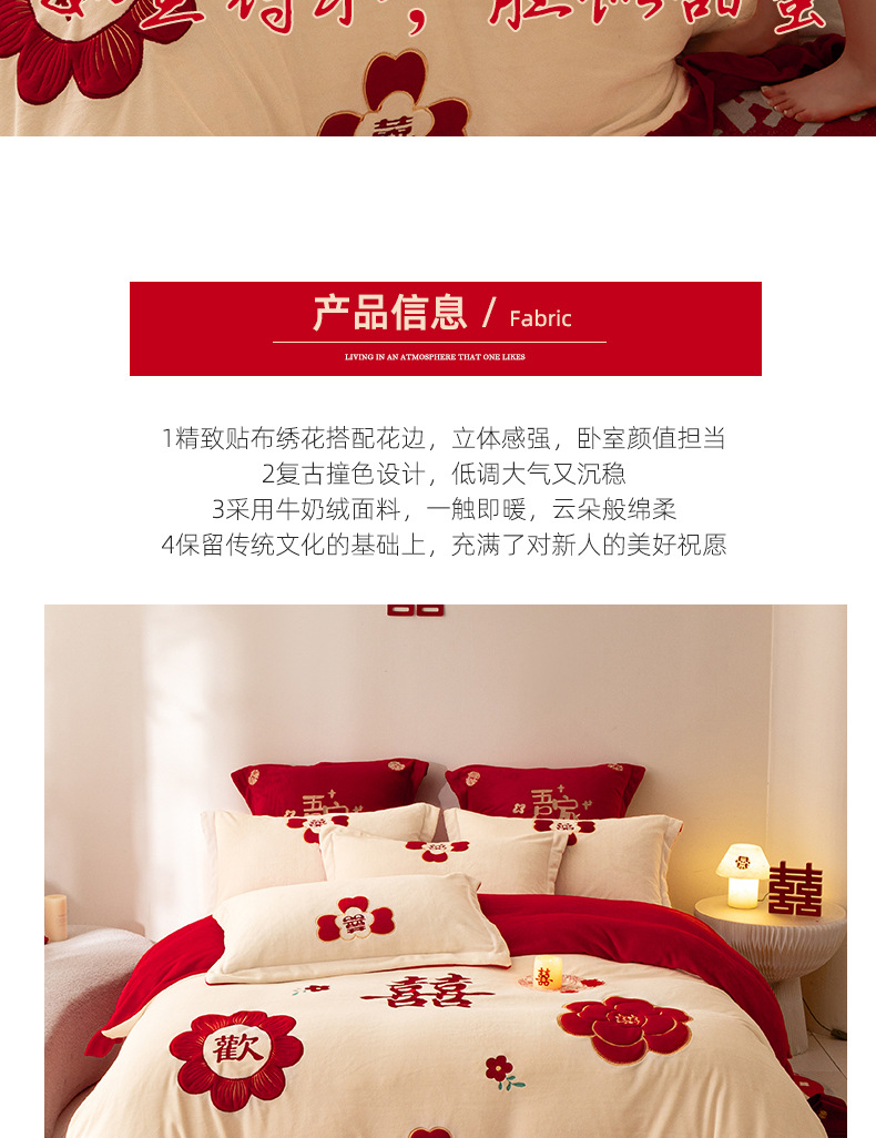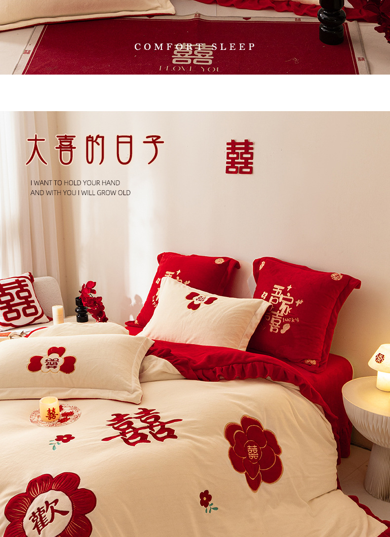 Комплект из четырех предметов для новобрачных, молочный бархат, двустороннее покрывало для зимы, коралловое бархатное постельное белье, красное свадебное покрывало, приданое