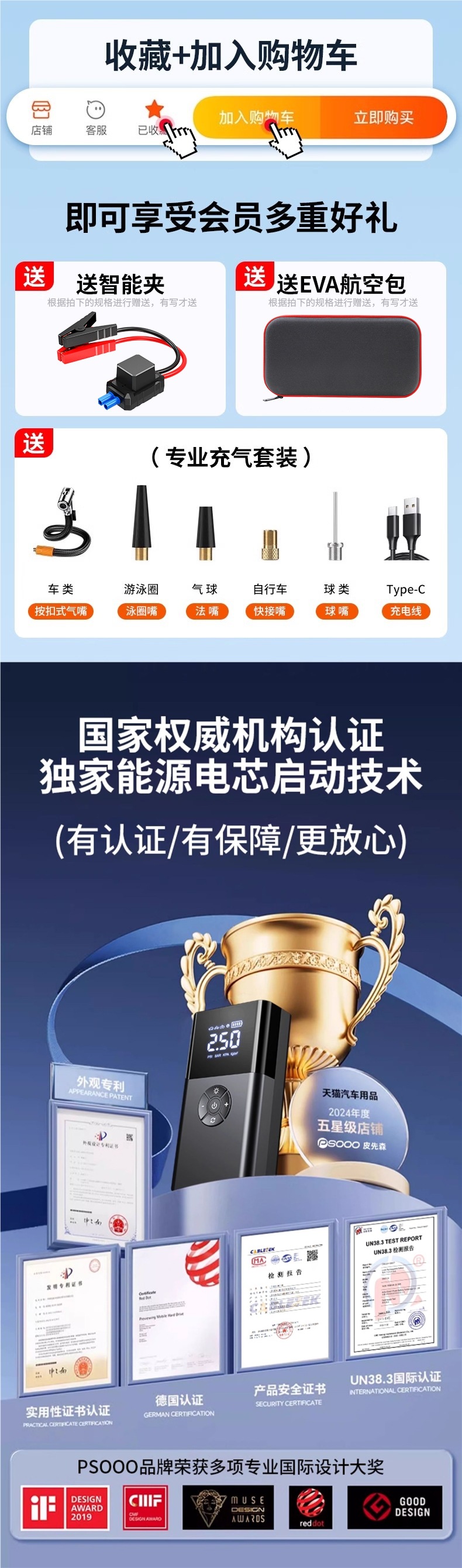 📦 | Enhanced version [emergency power supply + air pump + power bank] unlimited displacement, zero power, instant start, intelligent anti-reverse clip ★ Storage bag ★ Inflatable accessories + charging cable | ¥310.0 / ≈ 3 734 ₽ | 200 | 6120679303538 | |
