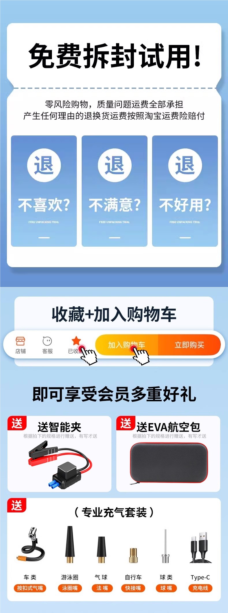 ![]() | 99999 enhanced strong start version [electric + inflatable all-in-one machine] unlimited displacement loss of electricity instant start bold battery clamp ★ Storage bag ★ Charging cable + various inflators | ¥364.0 / ≈ 4 385 ₽ | 200 | 5953942388291 | |