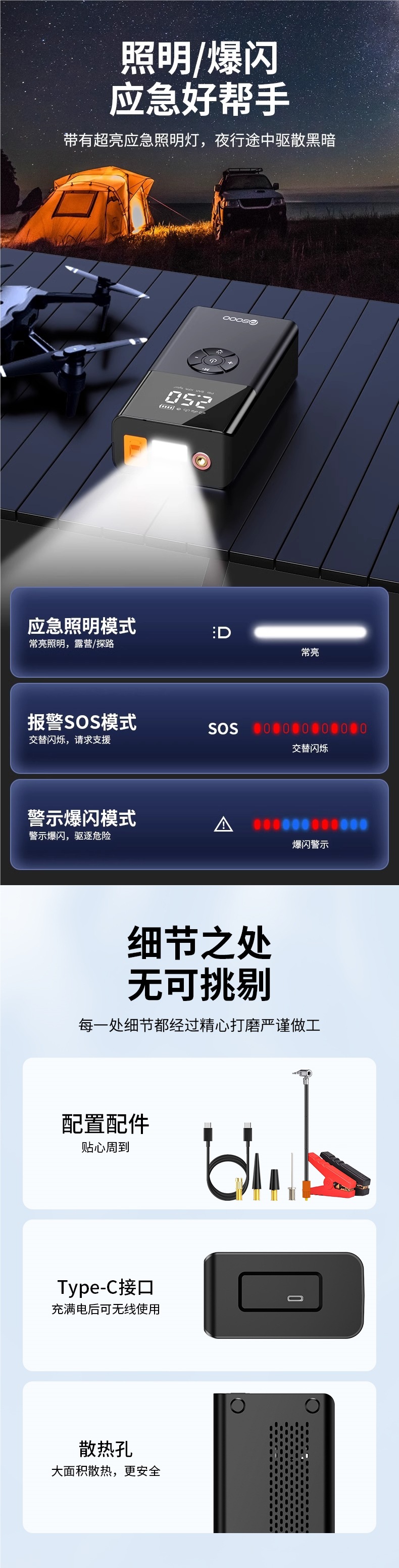 Аварийный пусковой аккумулятор автомобиля с воздушным насосом, интегрированный аккумуляторный бустер, пауэрбанк, инструмент для запуска
