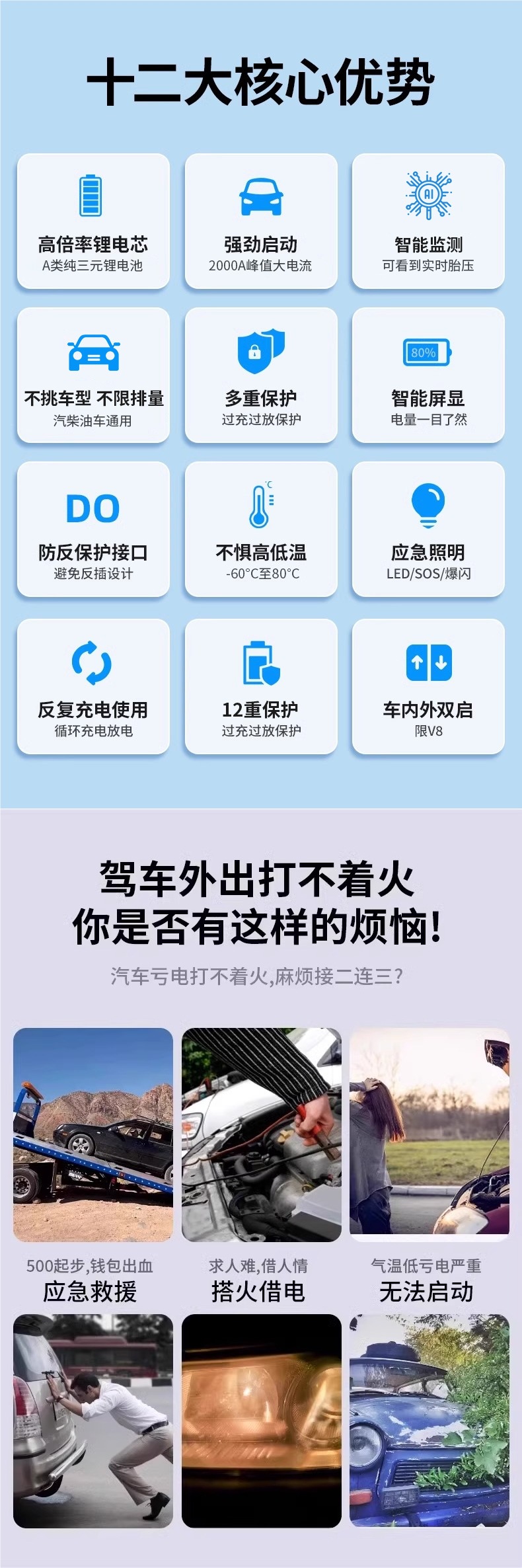 ![]() | 99959 top version with powerful start-up version [zero voltage second start-up, no limit on displacement/model] comes with intelligent anti-connection and anti-clip ✚ Storage bag ✚ Charging cable | ¥354.0 / ≈ 4 264 ₽ | 200 | 5953942388300 | |